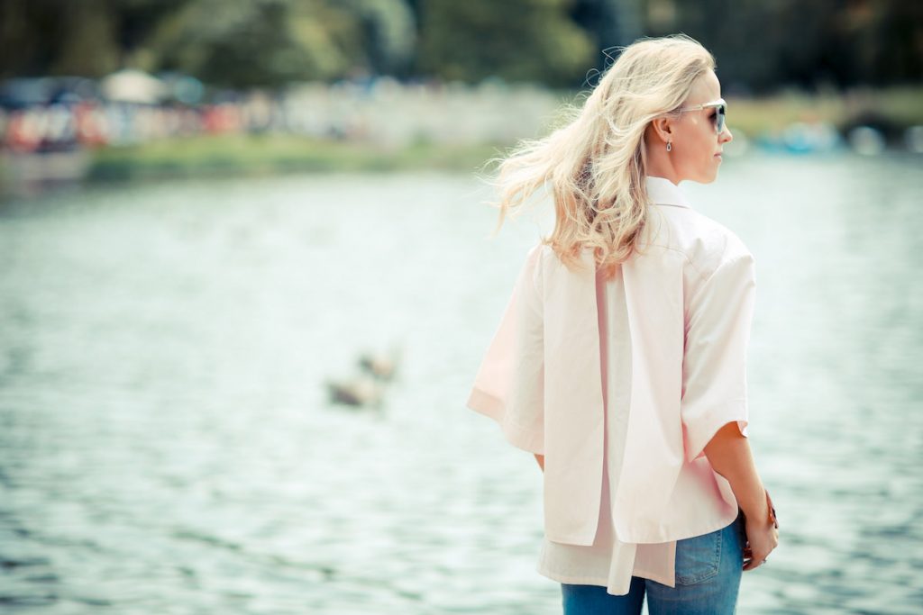 It can be black, red, pink, dark blue, light blue, beige … take a pick. What you can do is match the colour of the blazer to the accessories, such as your bag or a belt. The footwear can be either flat or high; if you’re going with sneakers, try to keep them a bit more elegant and special, but anything is possible with high heels: from stilettos to a thicker heel, from pumps to sandals.