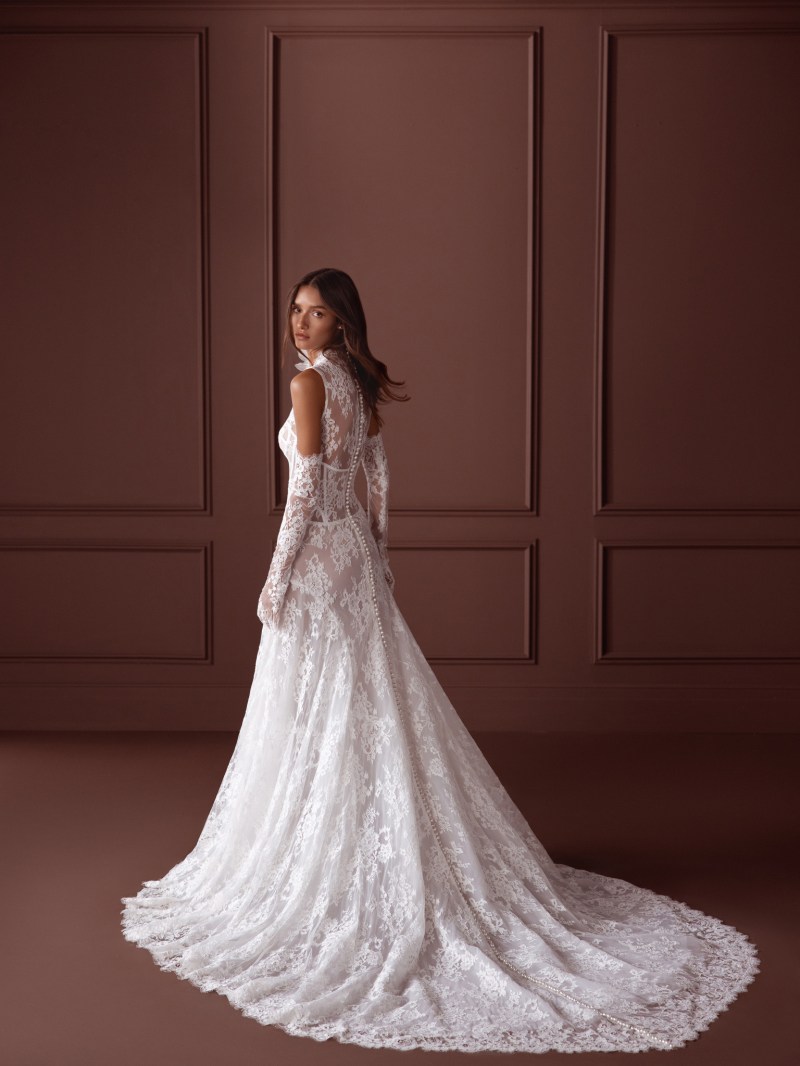 Renowned for her romantic aesthetic and exquisite craftsmanship, Monique Lhuillier captures the essence of femininity with her bridal collection for 2024. Drawing inspiration from the enchanting beauty of nature, Lhuillier’s designs feature delicate floral motifs, soft ruffles, and whimsical layers of tulle. Silhouettes range from ethereal A-line dresses to form-fitting mermaid gowns, each exuding an air of effortless chic and timeless grace. With a focus on intricate detailing and luxurious fabrics, Lhuillier’s collection embodies the epitome of bridal sophistication.