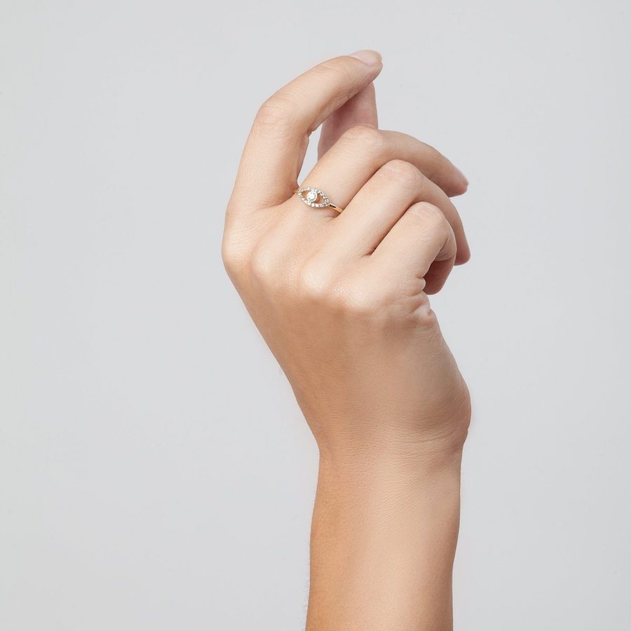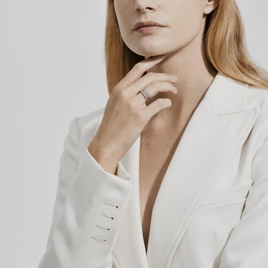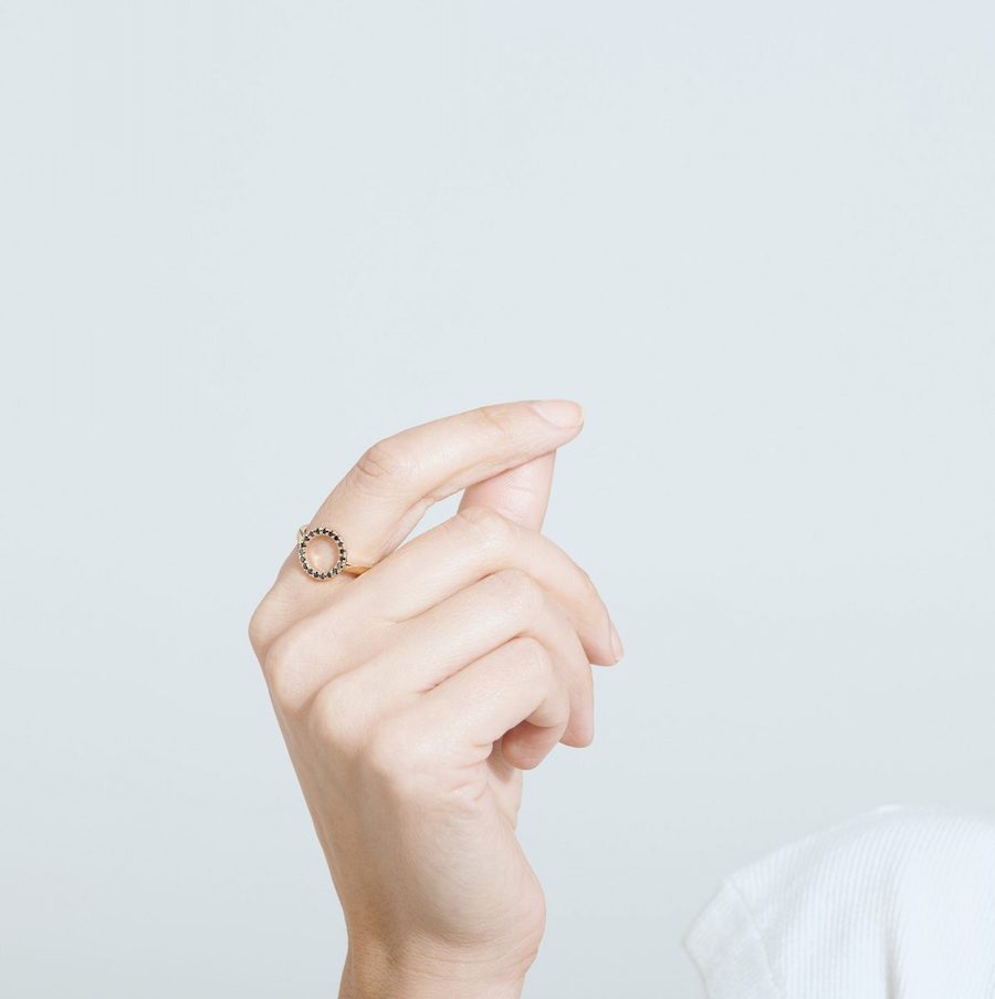 It can be a diamond ring, but it is not necessary to be super classic. Today you can really play with shapes, details, open and circle rings or black diamonds, which are always very sophisticated. Subtle hits of black diamonds makes as strong of a statement as lots of layered jewelry. People tend to notice the pieces that much more when they stand alone.