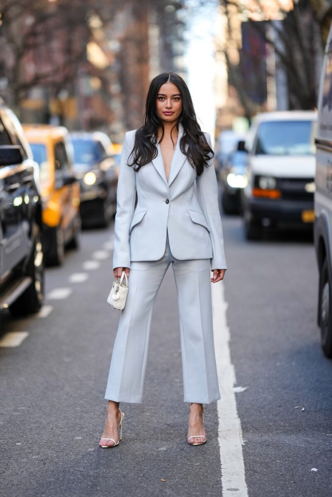 Spring heralds a departure from the somber tones of winter, welcoming a palette reminiscent of fresh blooms and sun-drenched days. Pastel hues take center stage, infusing the woman’s suit with softness and femininity. From delicate lavender to powdery pink and serene mint, these subtle shades breathe new life into traditional tailoring, offering a refreshing take on sophistication.