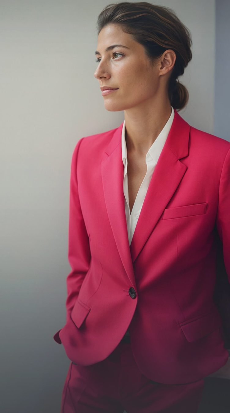 Spring heralds a departure from the somber tones of winter, welcoming a palette reminiscent of fresh blooms and sun-drenched days. Pastel hues take center stage, infusing the woman’s suit with softness and femininity. From delicate lavender to powdery pink and serene mint, these subtle shades breathe new life into traditional tailoring, offering a refreshing take on sophistication.