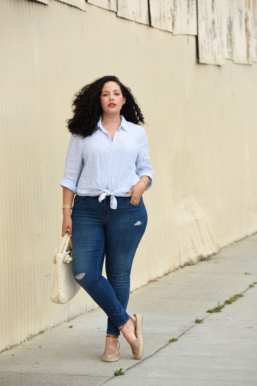 You should definitely opt for colors and white, when it comes to your summer wardrobe. White is key, even in a head-to-toe version, and please don’ start fretting over how it makes you look wider; it doesn’t. Lace or lace trim tunics are also an excellent choice. They’re loose, so you can style them with a tight bottom piece, such as white jeans.