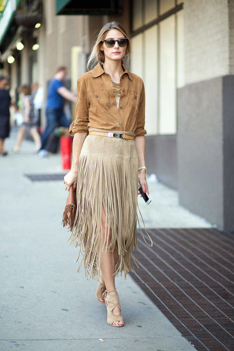Fringe. This trend is still in and it seems to me that every woman has at least one piece with fringe detail. It’s usually a bag or high heel sandals, but you can also find very nice fringed midi skirts, and even jeans (for the perfect gypsy style), T-shirts and long cardigans. A piece with fringe is new, fresh, and useful at the same time, and I am more than happy to wear it to work.