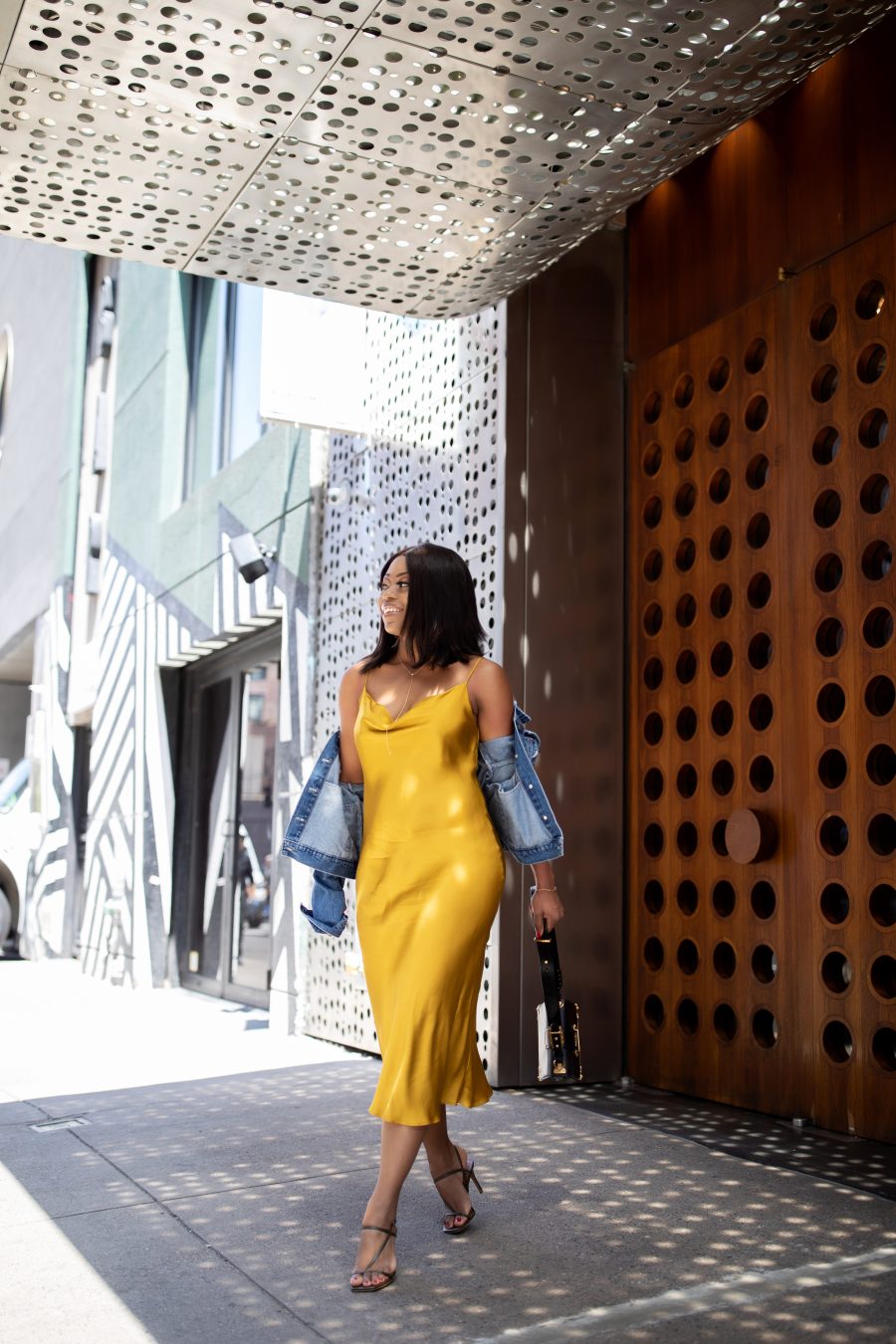 Slip dresses don’t have to be exclusive to your spring-summer attire. The garment has even proven itself an ideal piece for layering over long-sleeved shirts, so if temperatures are still chilly where you reside, you might want to consider adding one (or five) to your transitional wardrobe while you wait for temperatures to drop.