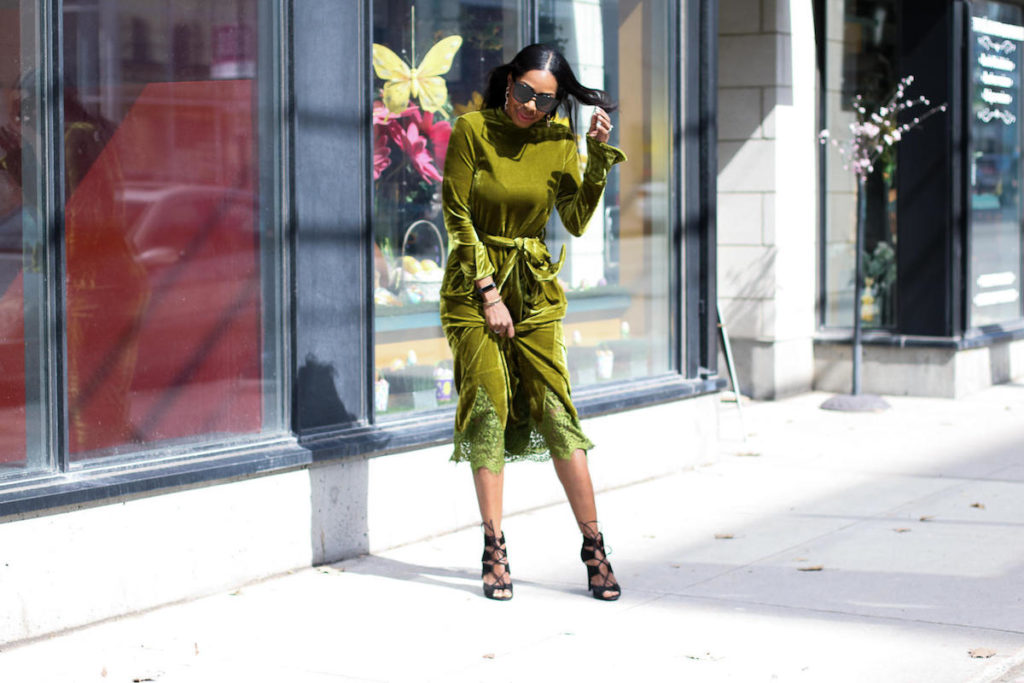 A super romantic and nice velvet dress will never go out of style. As the velvet jacket, we are talking about a piece that you can wear at the office or for a special evening, with high heels or ballerinas. My advice is to choose a solid colour, they are more sophisticated and velvet is quite rich as a material, so you can slow down with colours and prints.