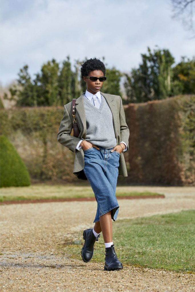 I think the jeans skirt is a good piece for the middle season, so wear it now, before it gets too cold!