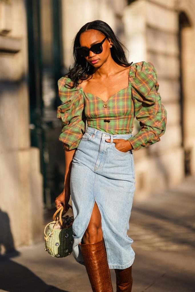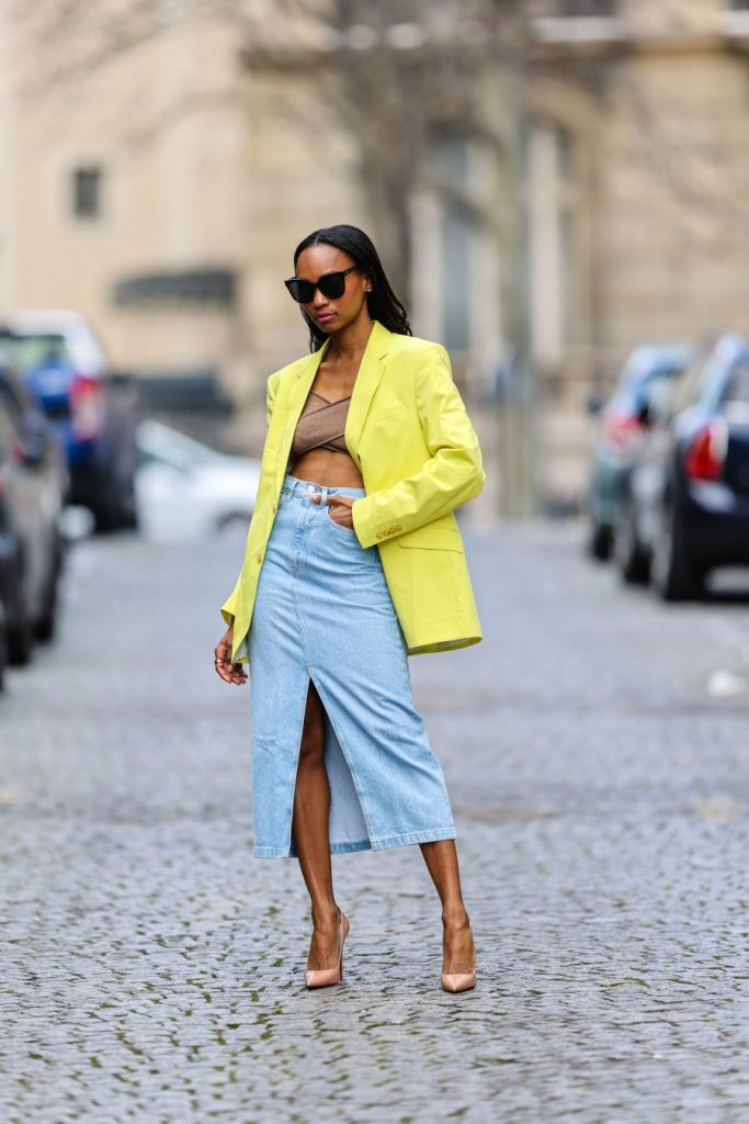 In a range of lengths and washes, the ensembles ahead offer versatility in your summer wardrobe. You can wear a sleek A-line silhouette with a tank and silk scarf for an afternoon date, or go more professional in a midi-length number with a kitten heel. Naturally, denim lends itself to casual dressing, too, especially when you choose lighter washes or a raw edge and style it with crop tops or your favorite knitwear. I love it with a blazer, a longer one, with a victorian blouse or a super simple tee. Wear combat boots, ballerinas, sneakers, or high heels, the choice is yours.