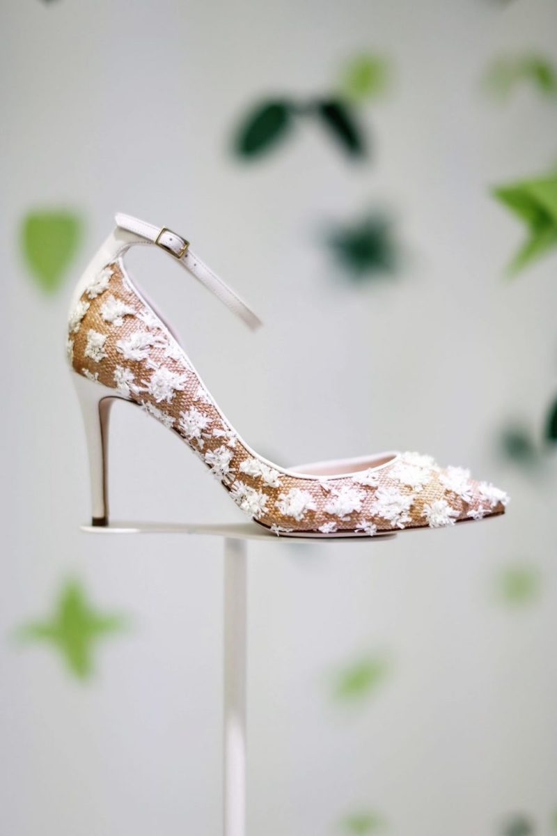 Each year, the summer collection includes refined sandals with a narrow high heel. This year’s spring-summer line of sandals goes perfectly with the new line of bags. The sandals are made of matte leather and suede in classic black and beige. Also noteworthy, the floral pumps in two versions: with a single ankle strap or with gladiator style lacing. Sandals in dark or light colour with pastel stones adorning the straps are another great look, they also come in white, which is ideal for brides-to-be.