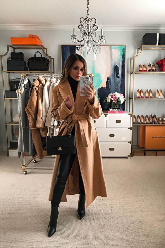 As the best camel coats naturally go with workwear, look to sleeker designs for something tailored to perfection. Camel color is neutral, that’s why it’s incredibly easy to work with. Yes, you can style it with anything you want. Try it on with leather pants, jeans, skirts, shorts, dresses in black, navy, white, green or burgundy colors. Speaking of coat styles, lengths and cuts, then you are free to choose whatever style you want. Of course, my advice is to choose an elongated version that will protect your booty from cold temperatures. If you do want to look sophisticated and always on trend, then be sure to wear classic style camel coats.