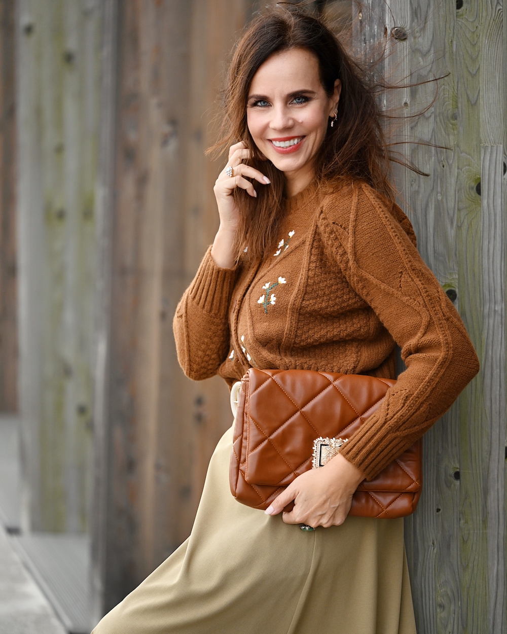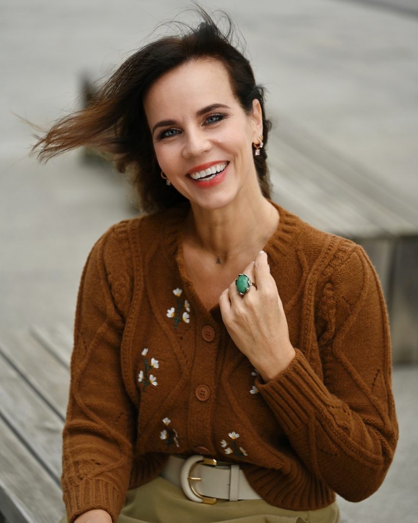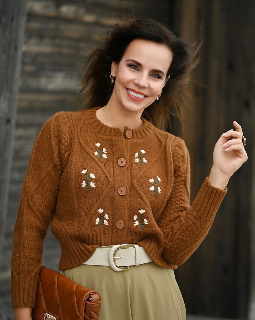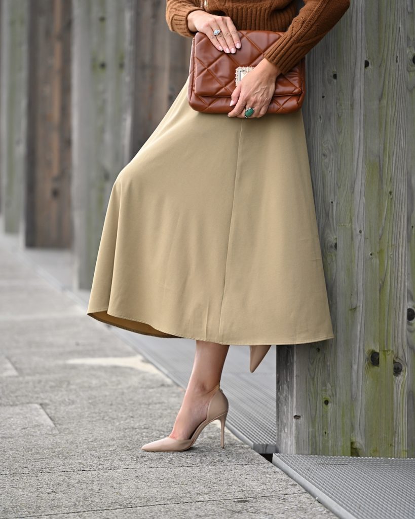The colors most associated with fall are orange, red, yellow and brown, inspired by the seasonal changing of leaves’ colors as temperatures drop and daylight shrinks. Fashion follows nature and right now there are really many styles in these shades, plus cosy knitwear and midi skirt for a new born sense of feminine and elegance. I just love being in my skin and today’s style is so me…Some of the neutral Autumn colors are ivory, cream, khaki, olive green, and brown. True Autumn color palette clothing is warm, rich, and earthy – think of the colors of the fall leaves, the bark of the trees, and the deep evergreens. The Autumn color palette is so beautiful, rich, and warm!