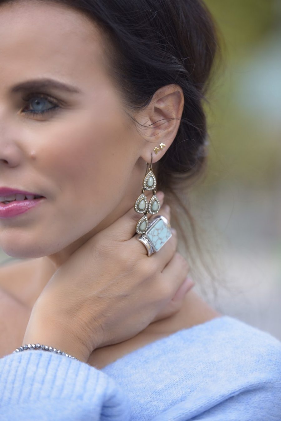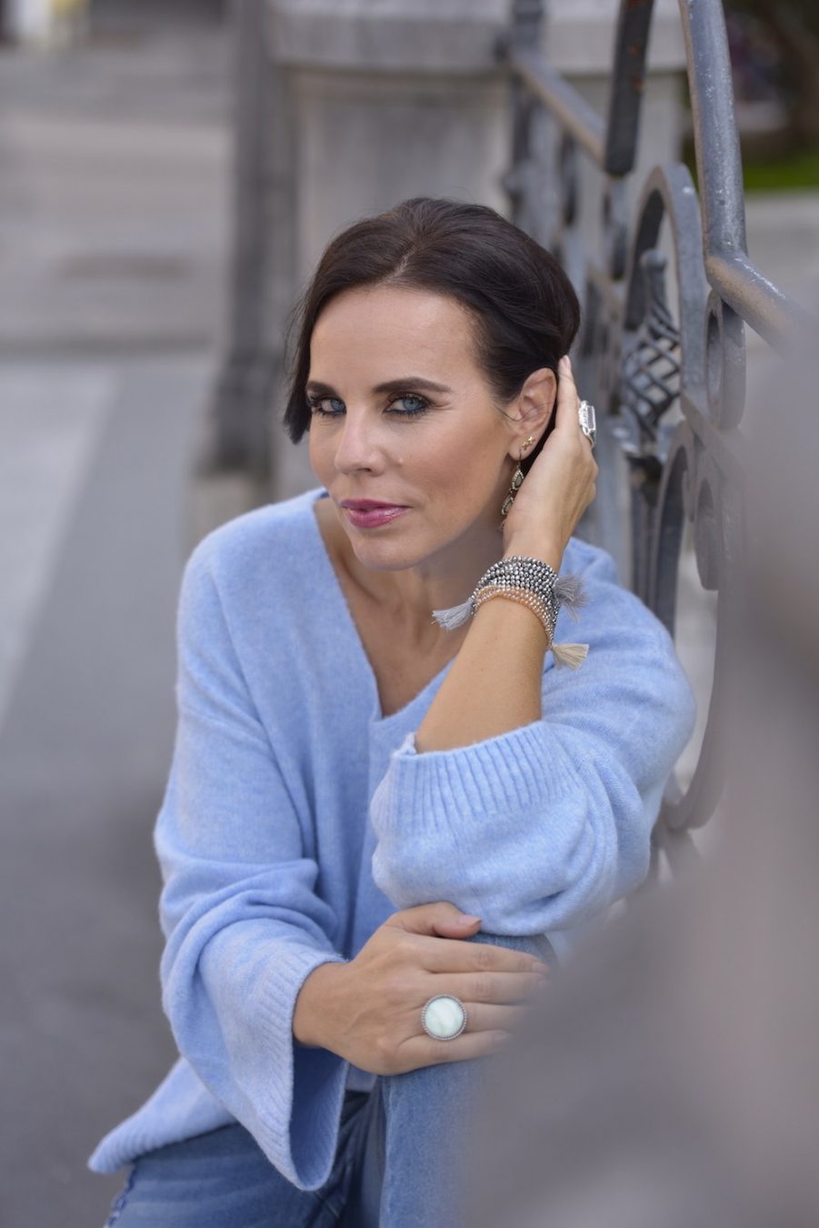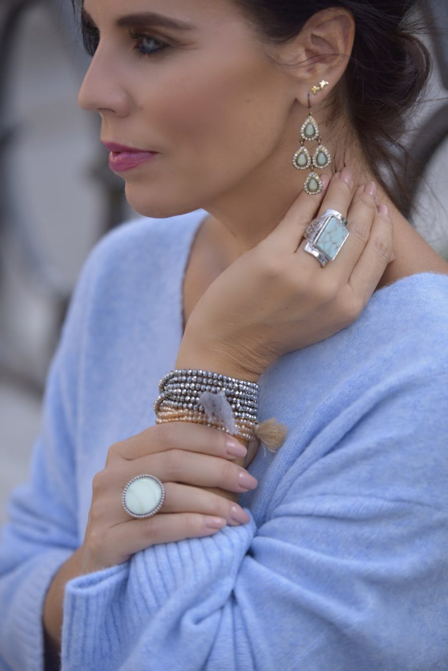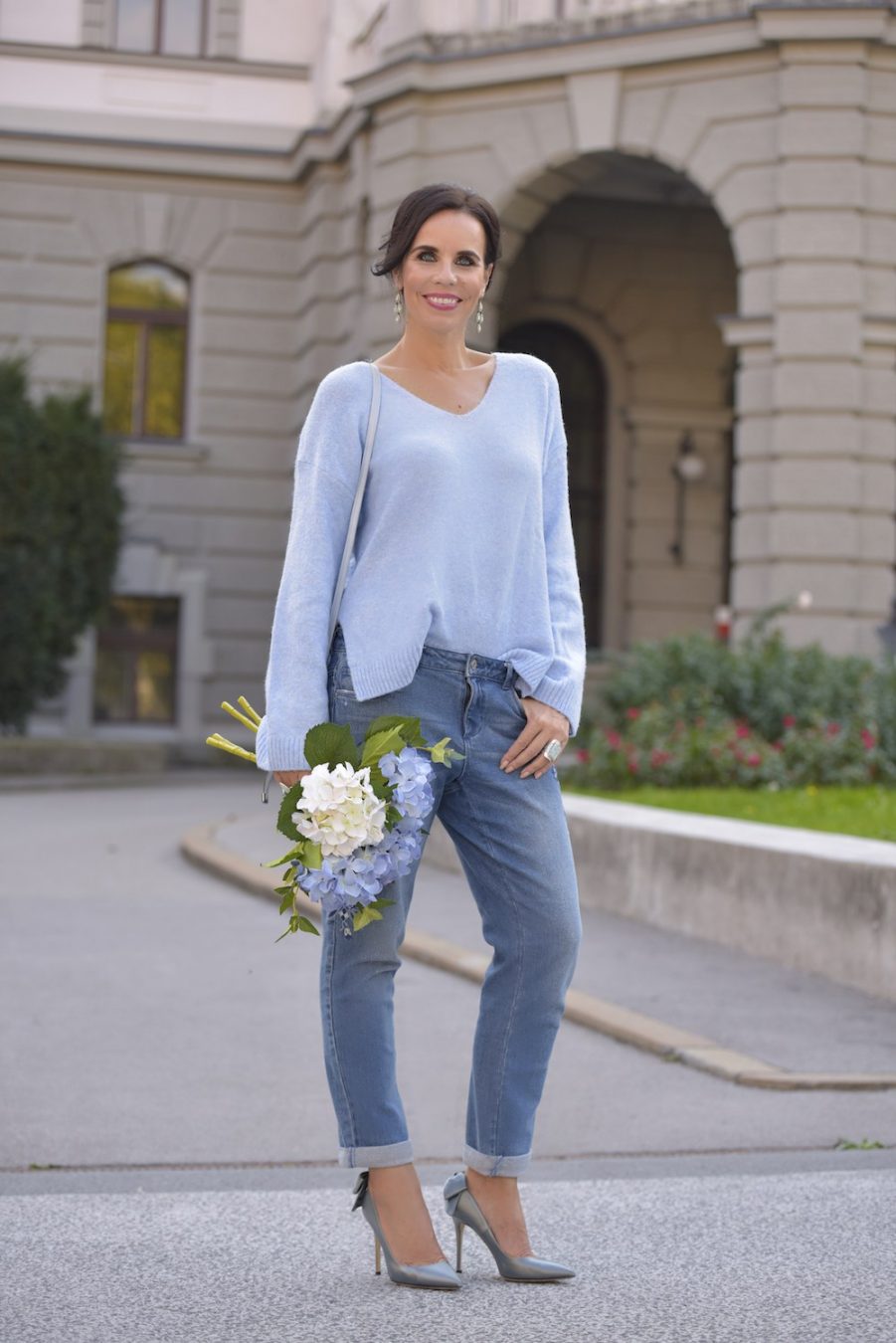 My style is as follows: knitwear H&M, jeans Dorothy Perkins, bag Asos, shoes Sarah Jessica Parker SJP, accessorize Asos, Swarovski, Accessorize.