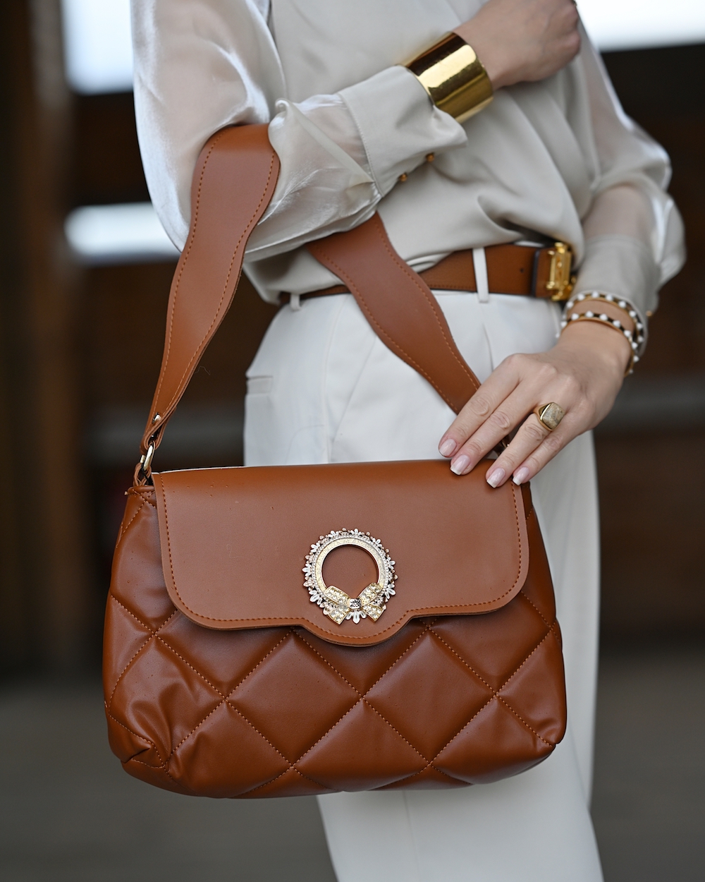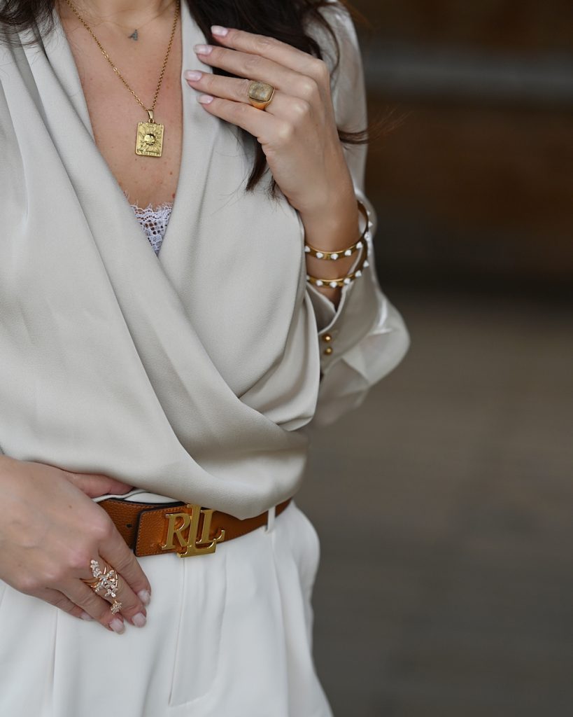 Happy Monday, dear readers! For the beginning of the new week and just after the new moon and, of course, the perfect start of the Rabbit Chinese Year, my choice is white. Or, better, soft and elegant shades of ivory. I have added dimension to an all-white look by mixing varying shades of white and cream, contrasting textures, brown and chic accessories. The blouse is stunning, I really like the sheer sleeves and the way it is draped in the front. Even if I love denim, I have to admit that this elegant style makes me feel better and in the right place. Plus I can add the power of high heels and be at the top of the world!