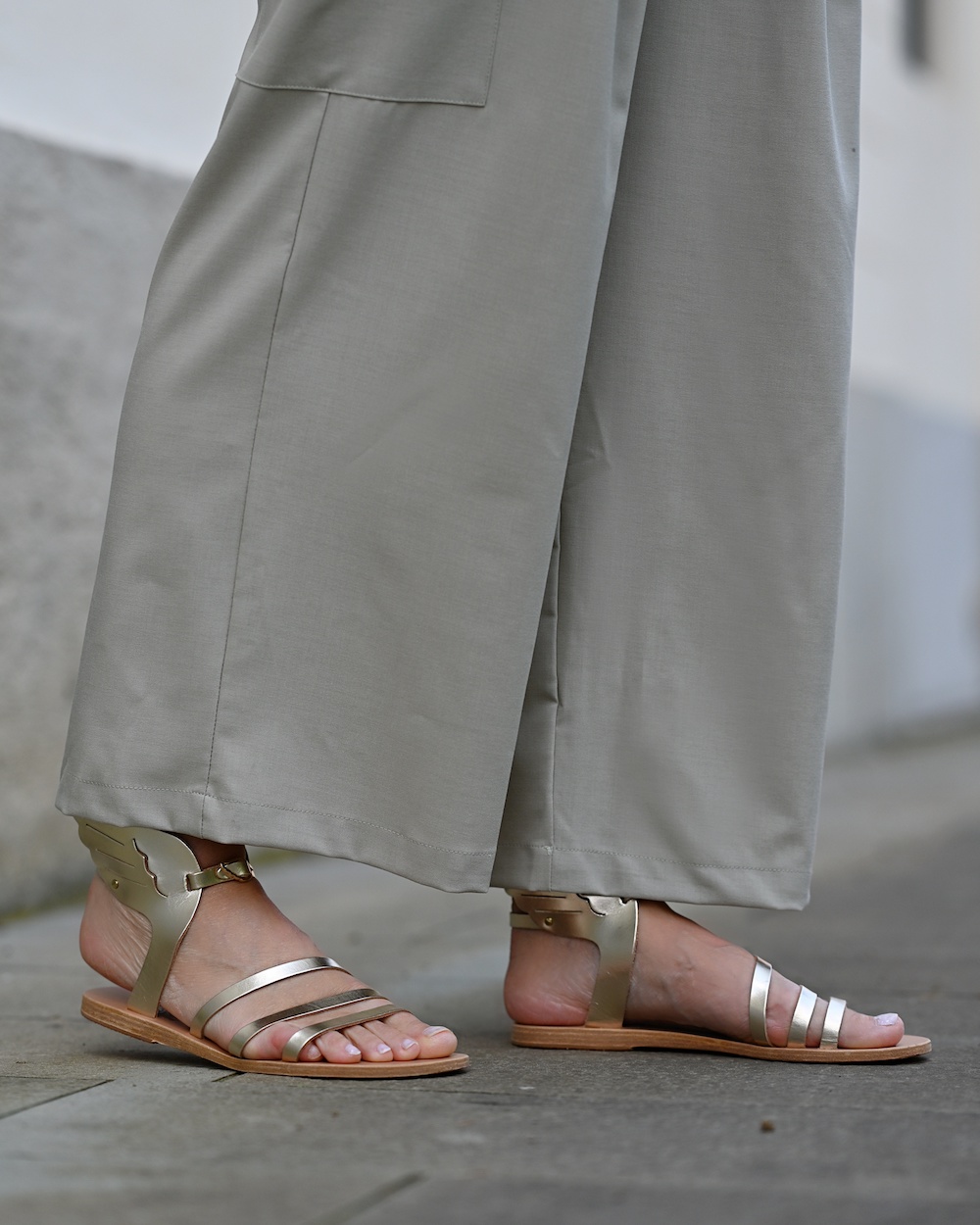 I’ve always liked how fancy jumpsuits come across and how just one piece can make a complete outfit. They make it easy to dress nice and look stylish! As a dress, it’s one and done. But jumpsuits can be a little intimidating and if not worn correctly can look sloppy or make you look shorter or wider than you are. There’s a reason you mainly see black and white jumpsuits. They are easier to wear! In this case I opted for a simple, cotton, fresh military green jumpsuit, that was so nice to style with many golden details, as the flat Ancient Greek sandals and a bit of jewels. I am happy with the result, it might be this piece will become a must have for summer!