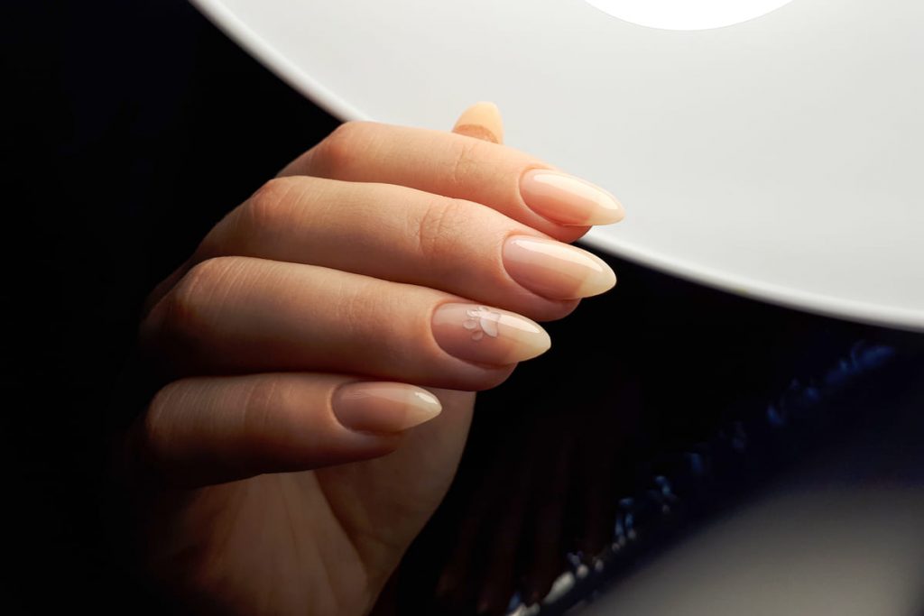 Almond nails share many similarities with oval nails, but the difference is that oval nails have less tapered sides and a more blunt tip. Oval nails are more natural in appearance and are incredibly versatile. They are also one of the strongest nail shapes. In contrast, almond nails have slim, tapered sides that form a point and can create a more statement finish, giving you a manicure that demands attention. Almond nails are also flattering on all fingers and can elongate and slenderize shorter fingers.