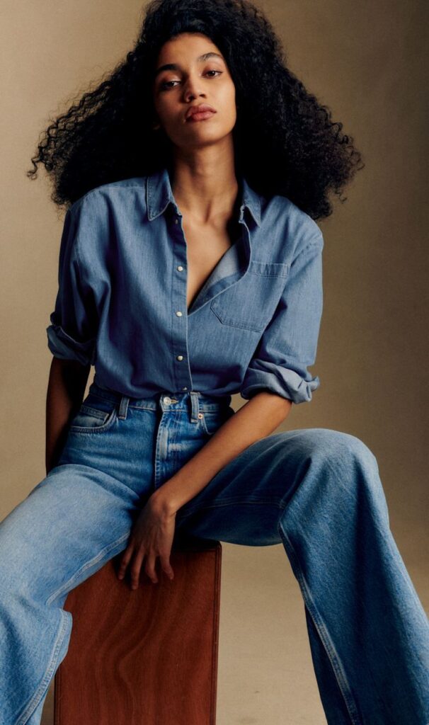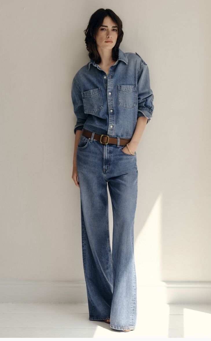 What makes the denim shirt so compelling is its natural versatility. It carries a certain duality that feels incredibly modern: it can be relaxed yet polished, understated yet expressive. Worn open over a simple top, it suggests ease and spontaneity; buttoned up and paired with tailored trousers or a silk skirt, it becomes surprisingly elegant. Even the once-controversial double denim look has found its place again, now styled with balance and subtlety, creating a cohesive and contemporary silhouette.