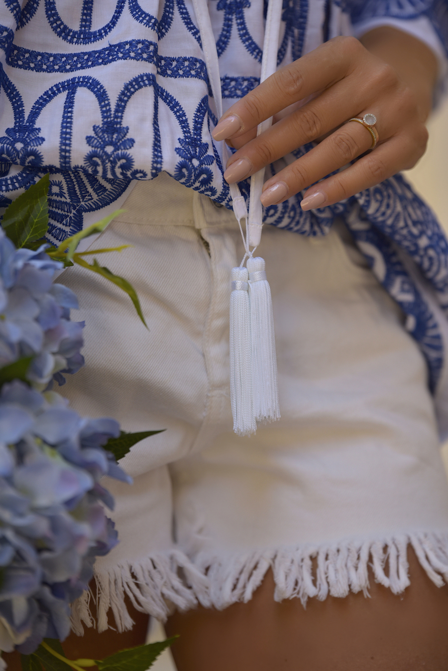 My style is as follows: shorts Mango, ethnical tunic Anna Rachele Resort, espadrilles Escadrille Paris, bag Boho Bags, jewellery Etro, small ring Monica Vinader.