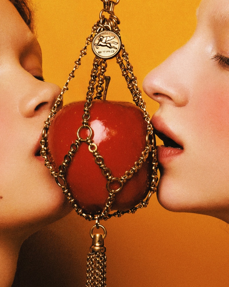 The dreamy images, masterfully captured by photographer Zhong Lin, showcase the Etro spring 2023 collection highlighting printed crop tops and skirts paired with statement platform heels. The boho-chic aesthetic is further enhanced by colorful embroidery, adding a whimsy touch to each piece. Creative director Marco de Vincenzo’s designs take the spotlight while fashion editor and stylist Gabriella Karefa-Johnson expertly curated the looks. Hairstylist Jawara and makeup artist Ammy Drammeh worked their magic, transforming the models into ethereal beings fit for this mystical realm, with Iman Kaumann and Livia Hammar’s auburn tresses standing out.