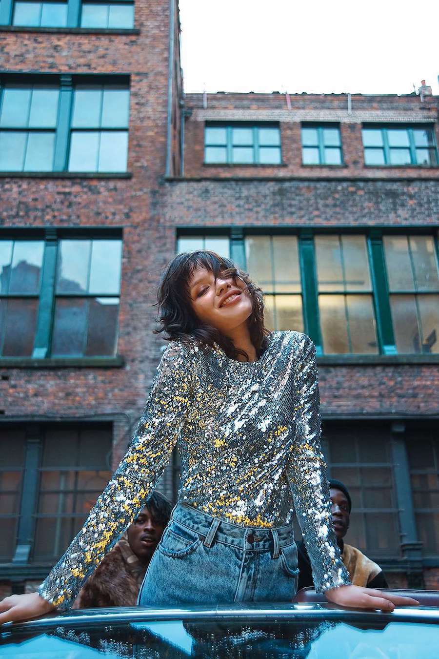 Other stylish pairings to experiment with include a sequin skirt and white sneakers, or an embellished top layered over a crisp cotton shirt.