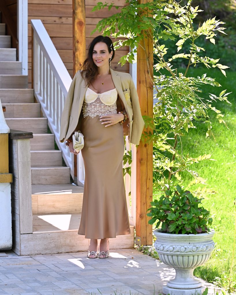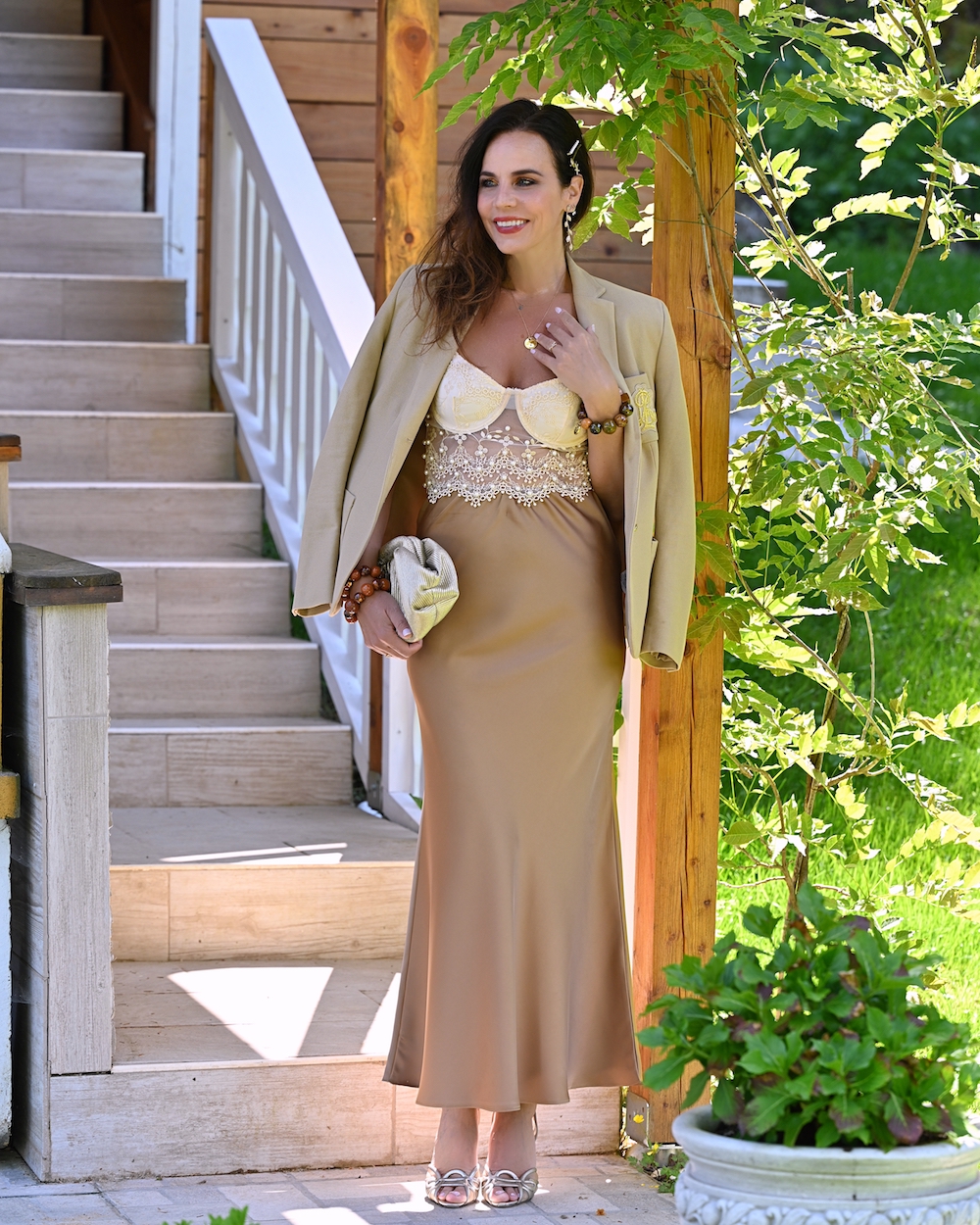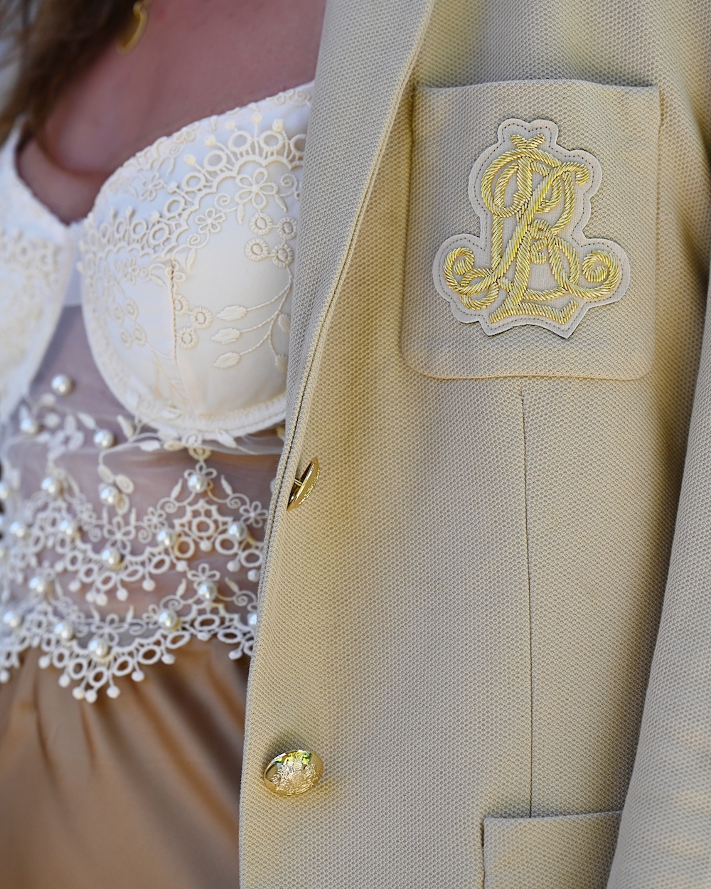 My style is as follows: skirt and corset Chicwish, blazer Ralph Lauren, bag My Lovely Bag, bracelets Maja Maras (find her on Instagramu), sandals Charlotte Olympia