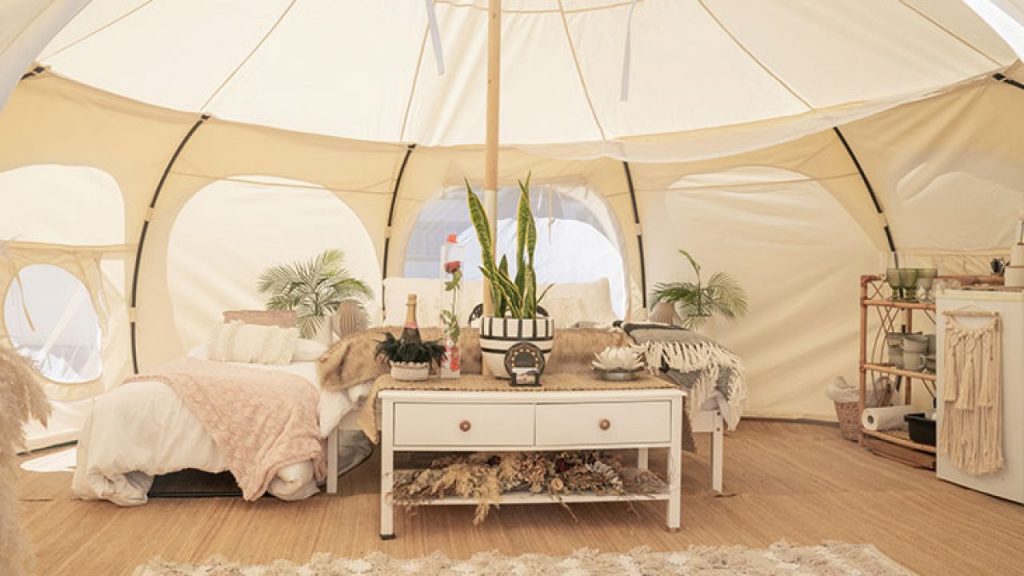 Nature is hot and spending time outdoor is hot. Spending time in outdoor settings is even hotter. Take it all together and add an extra little luxury – time for ourselves, attention of family and friends, nature, peace and quietness – and you get Glamping. Adding a little glamour to camping brings it right in the middle of the desires of modern consumers. Staying in a big tent in the middle of nature with plenty of space and real furniture, eating luxury food from the fireplace outside and having a good chat with your friends and family is modern luxury! Gone are the days when camping was characterized by damp nights. So if your last camping trip was muddy and scary, don’t fret.