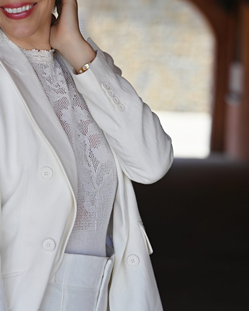 My style is as follows: suit and top Zara, sandals Twinset Milano, bag Aldo, rings Marni and Aldo, bracelet JCrew.