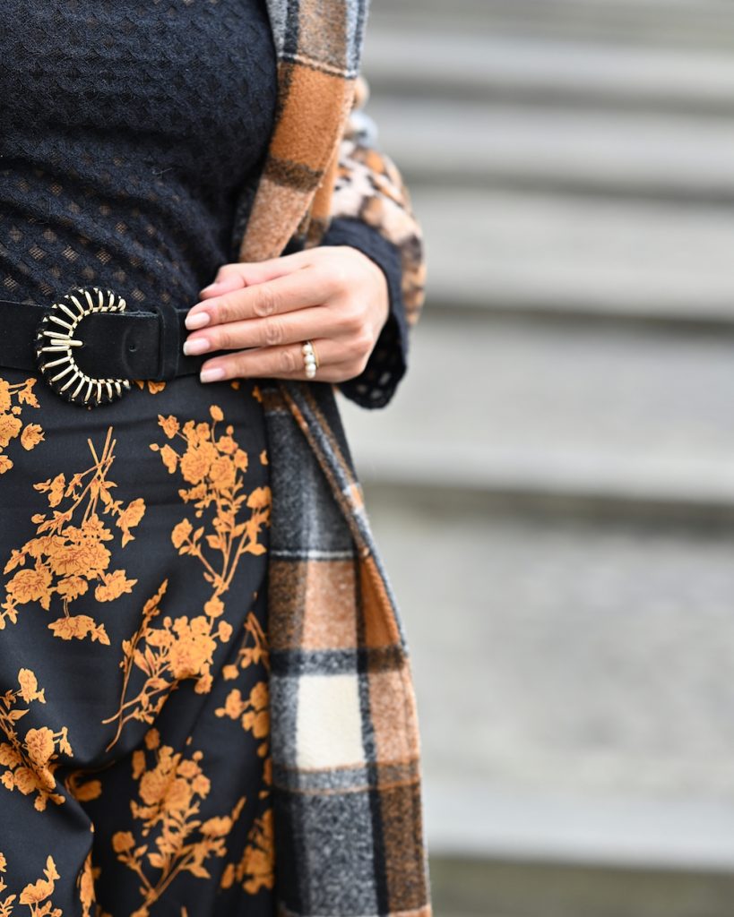 There’s an old rule about not pairing black and brown together in an outfit. As with most fashion “rules,” this one is completely wrong. You can totally pair them! This is also a nice combination for the winter season, when total black becomes too much, you can always add another color and brown seems to be the right decision. Plus I just fell in love with the tight, sexy floral skirt to which I add an amazing knitwear with romantic sleeves. Fashion rules are meant to be broken. Anything, literally anything goes in 2023. So you can wear black and brown together any way you’d like.