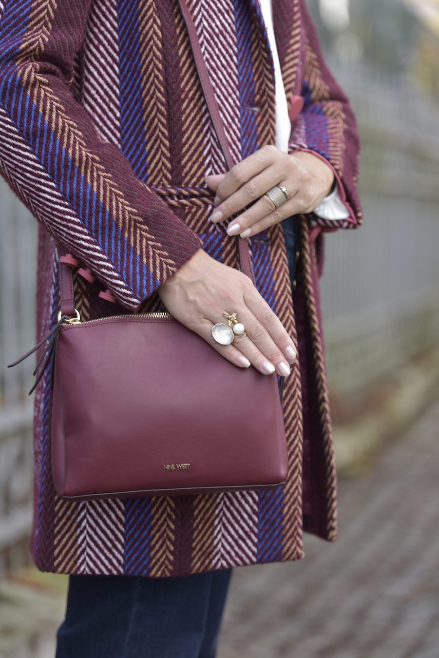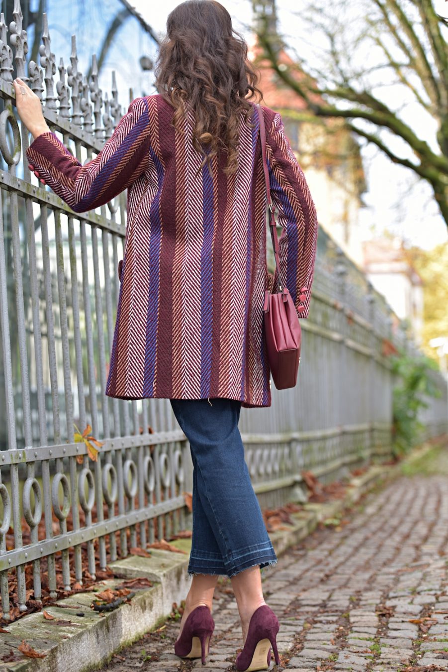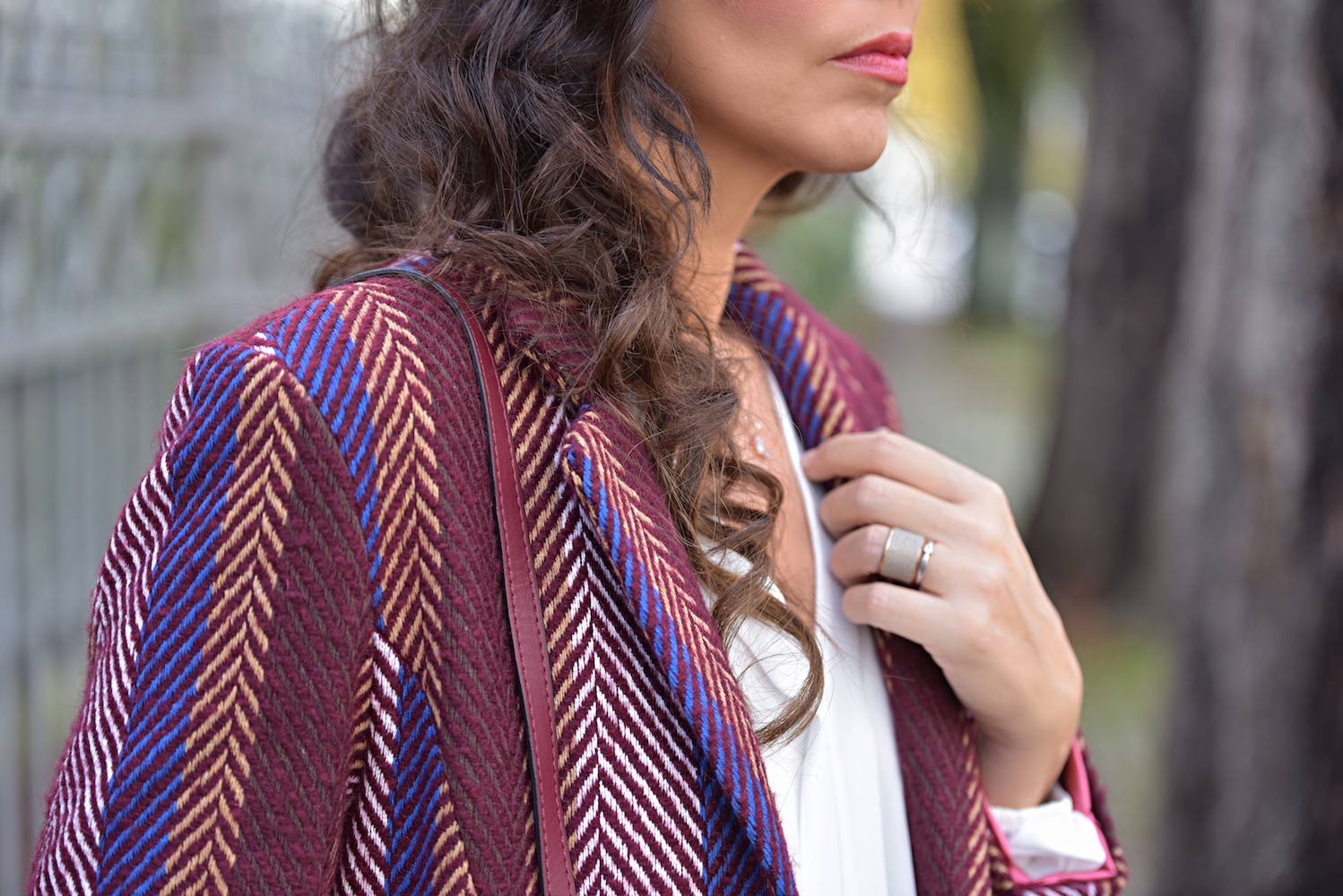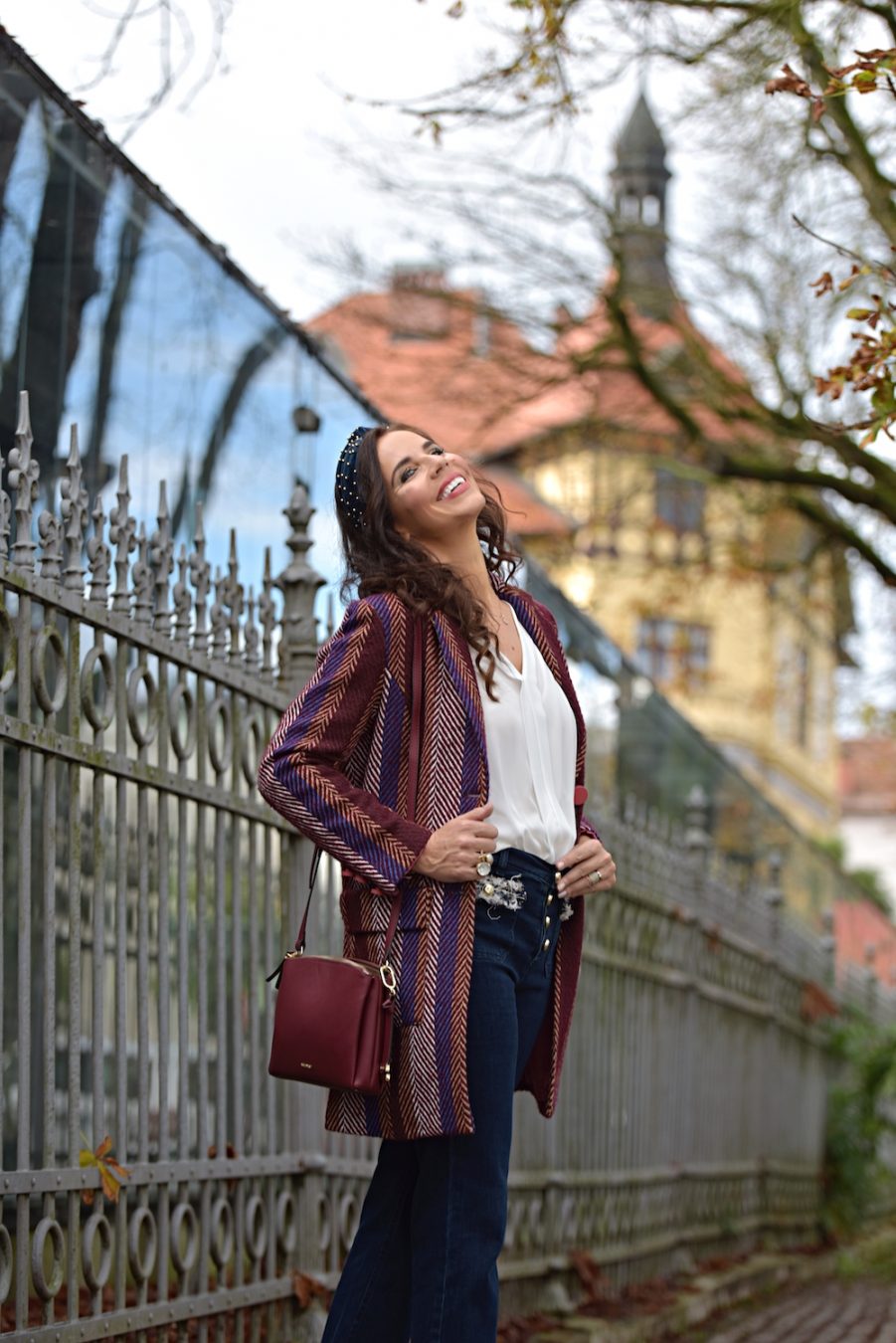 No matter what’s your skin color, height or body shape, this colour suits everyone. The great paradox of burgundy is the elegant and playful look. I think every lady should own at least a couple of burgundy color garments in her closet. You can wear it to different occasions, starting from simple walks on the town to fancy parties. In this case I decided to wear burgundy with a pair of tight jeans; I love the details on the pockets, super chic and soooo Chanel! The high waisted model is really feminine and comfy, so I use to wear it all day long, even with ballerinas or flat ankle boots.