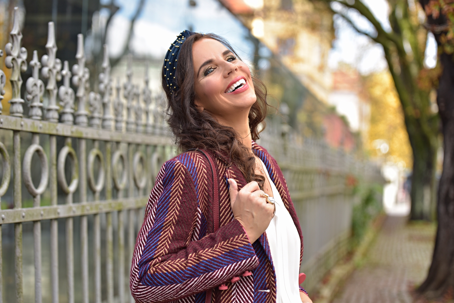 My style is as follows: pants, blouse and long jacket Fracomina, shoes and bag Nine West, rings: Tootie, H&M; necklace Monica Vinader, hairband Zara.