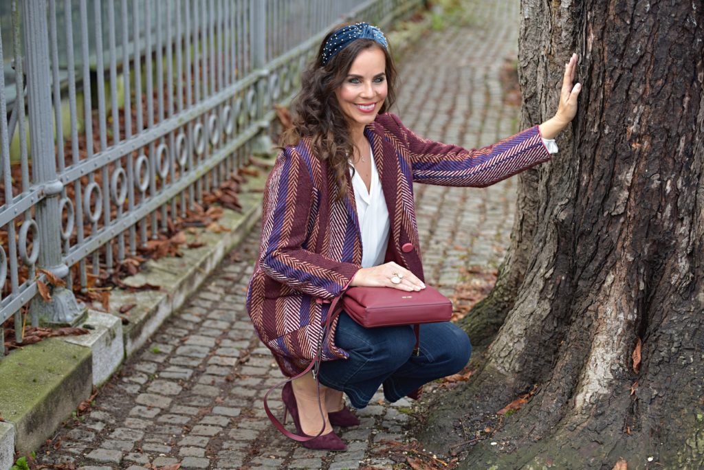 No matter what’s your skin color, height or body shape, this colour suits everyone. The great paradox of burgundy is the elegant and playful look. I think every lady should own at least a couple of burgundy color garments in her closet. You can wear it to different occasions, starting from simple walks on the town to fancy parties. In this case I decided to wear burgundy with a pair of tight jeans; I love the details on the pockets, super chic and soooo Chanel! The high waisted model is really feminine and comfy, so I use to wear it all day long, even with ballerinas or flat ankle boots.