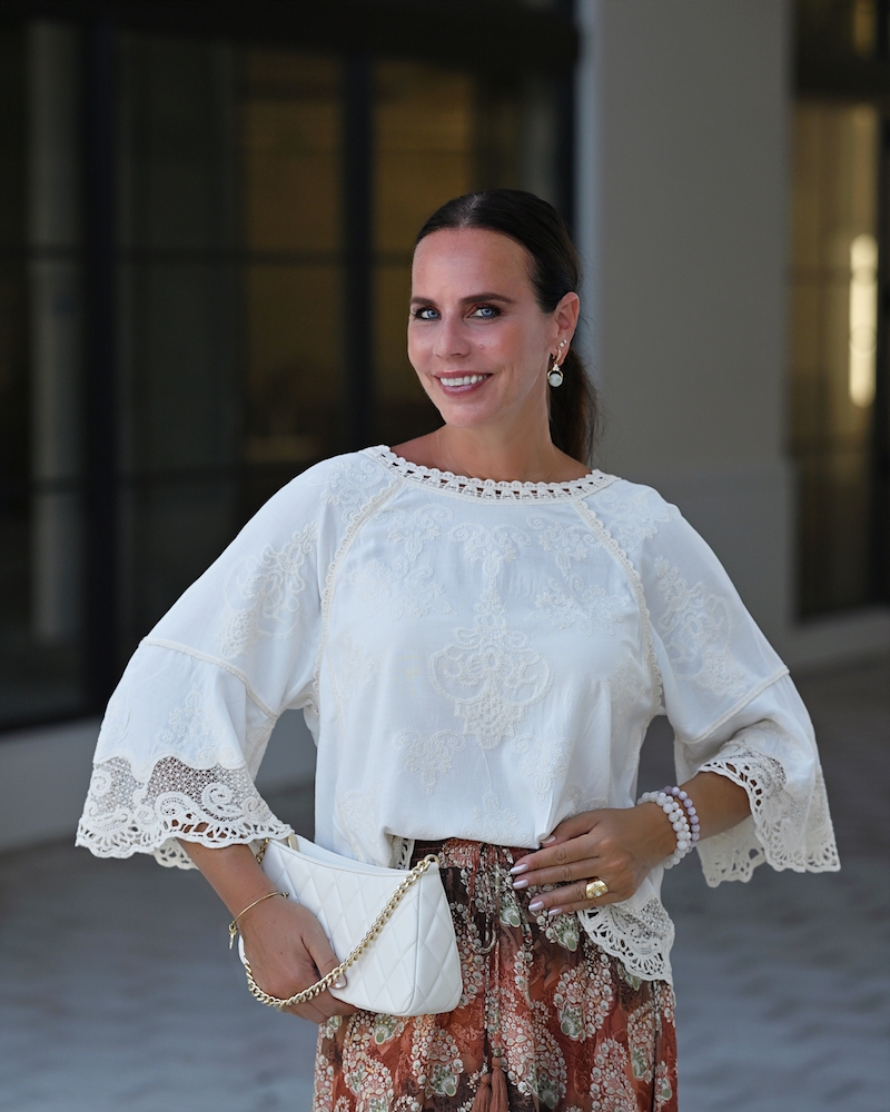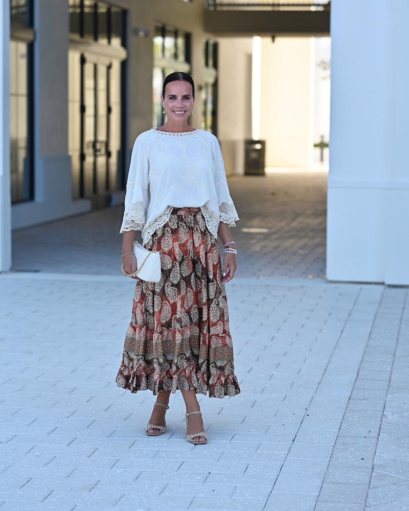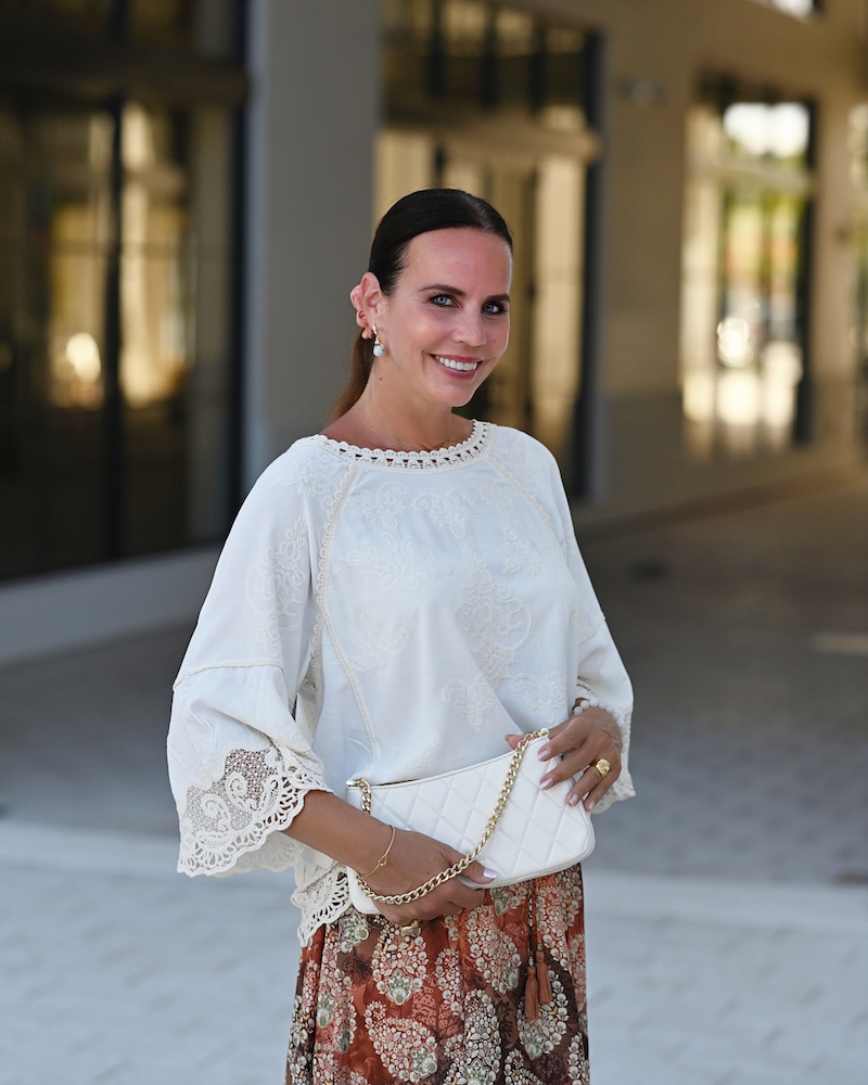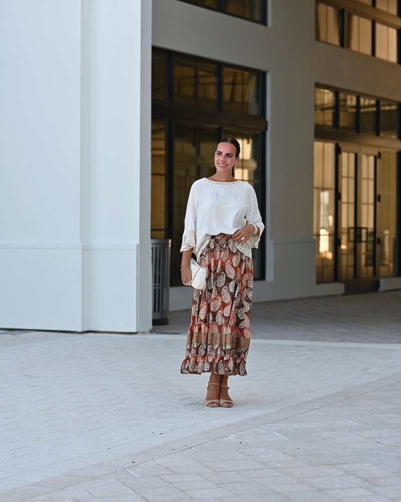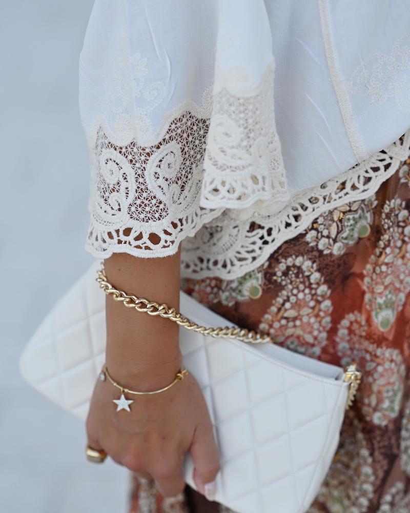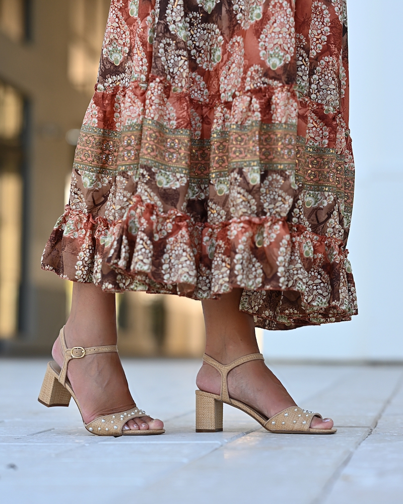 Fashion is at its best when it blends femininity with comfort. Today I chose a midi ruffled skirt in warm brown tones with a delicate print – a piece that moves gracefully with every step, adding a hint of romance.I paired it with a boho blouse, whose relaxed silhouette brings that sense of freedom I truly love. To complete the look, I went for mid-heeled shoes – elegant yet comfortable enough to wear all day. This is the style that feels most like me: feminine, wearable, and effortlessly mine.