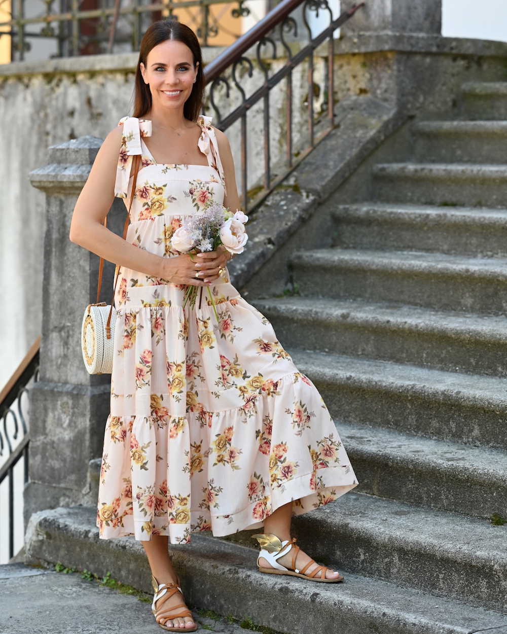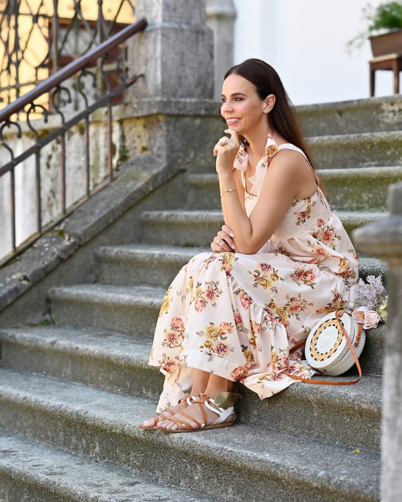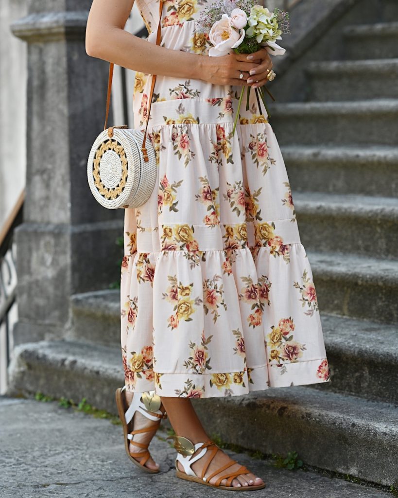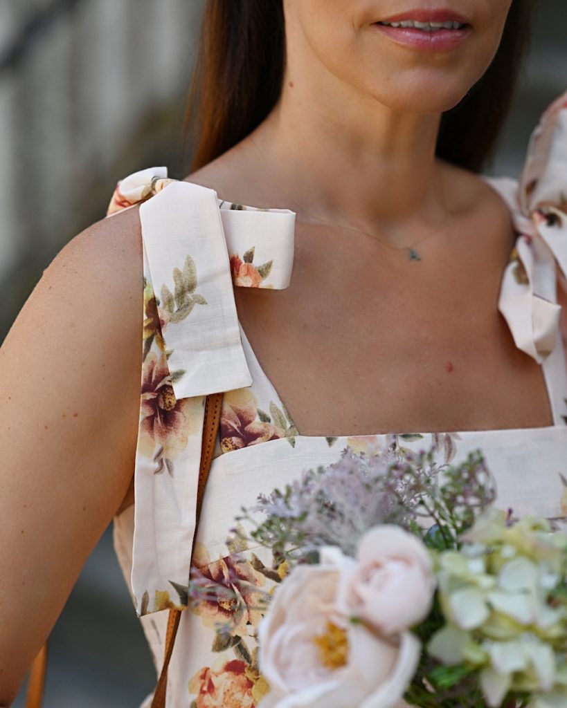 It has bows on the shoulders, it comes in an amazing shade of apricot pink, it is midi, fresh, with some movement and really easy to wear. I have to admit: my wardrobe is really full of dresses, but this one is my favorite. I just love to wear it with flat sandals, sneakers, or heels, to add a raffia bag and explore new cities and streets, capture under the July’s sun, lazy and slow. It feels like I am the only one in the world and this sensation might be amazing: in silence I keep watching for new experiences, because July is the month to become. We are in the fool blooming of summer, hot and sparkling, my eyes are wide open and I am still so curious about life. How wonderful and magical to be part of this story.