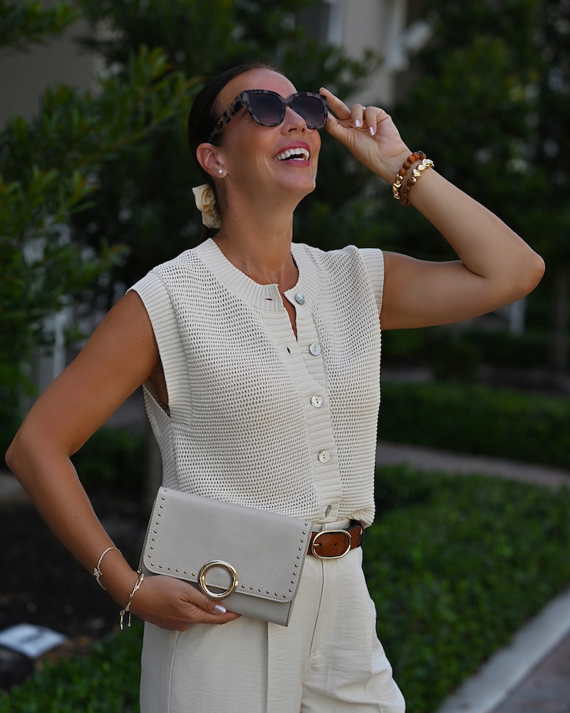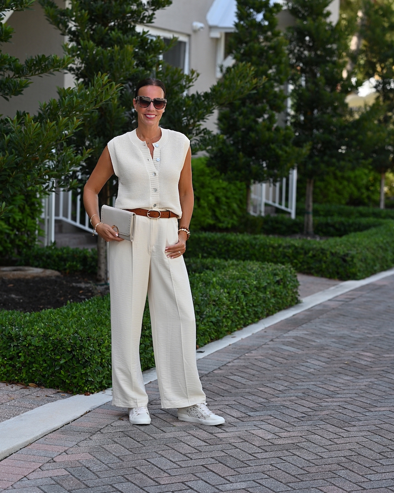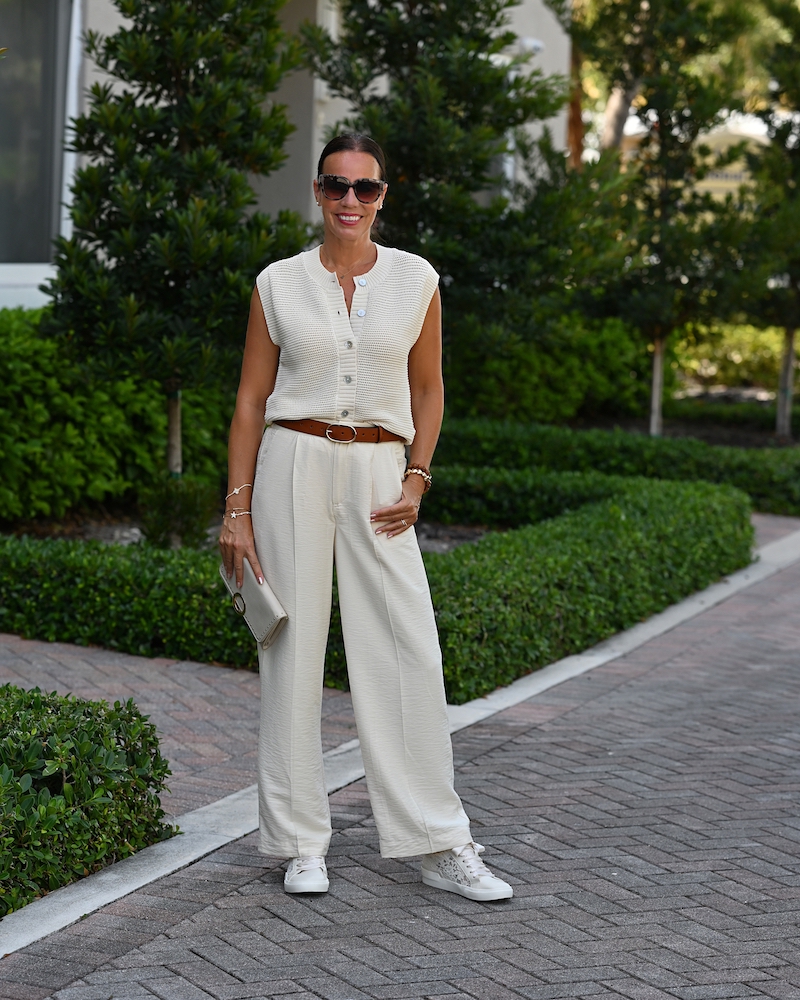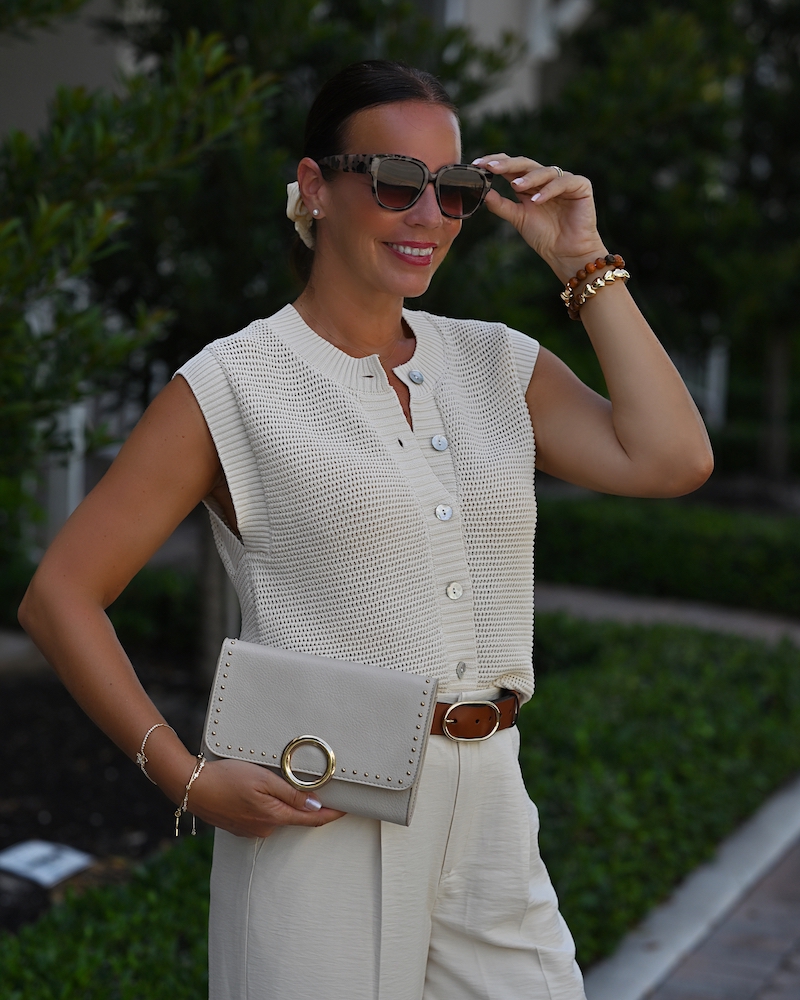 Today’s outfit embodies elegance in its most minimalist form – I chose an ivory set, made of trousers and a knitted top. Clean lines, comfortable tailoring, and a neutral shade create a refined look that stands out without the need for extra details. The power lies in simplicity – timeless beauty that works for many occasions.Sets have become a true fashion statement in recent seasons. Their popularity comes from practicality: they provide a perfectly coordinated look with no effort, easily enhanced with accessories or left as is. In neutral tones like ivory, they appear both modern and classic – ideal for business meetings, city walks, or evening outings.