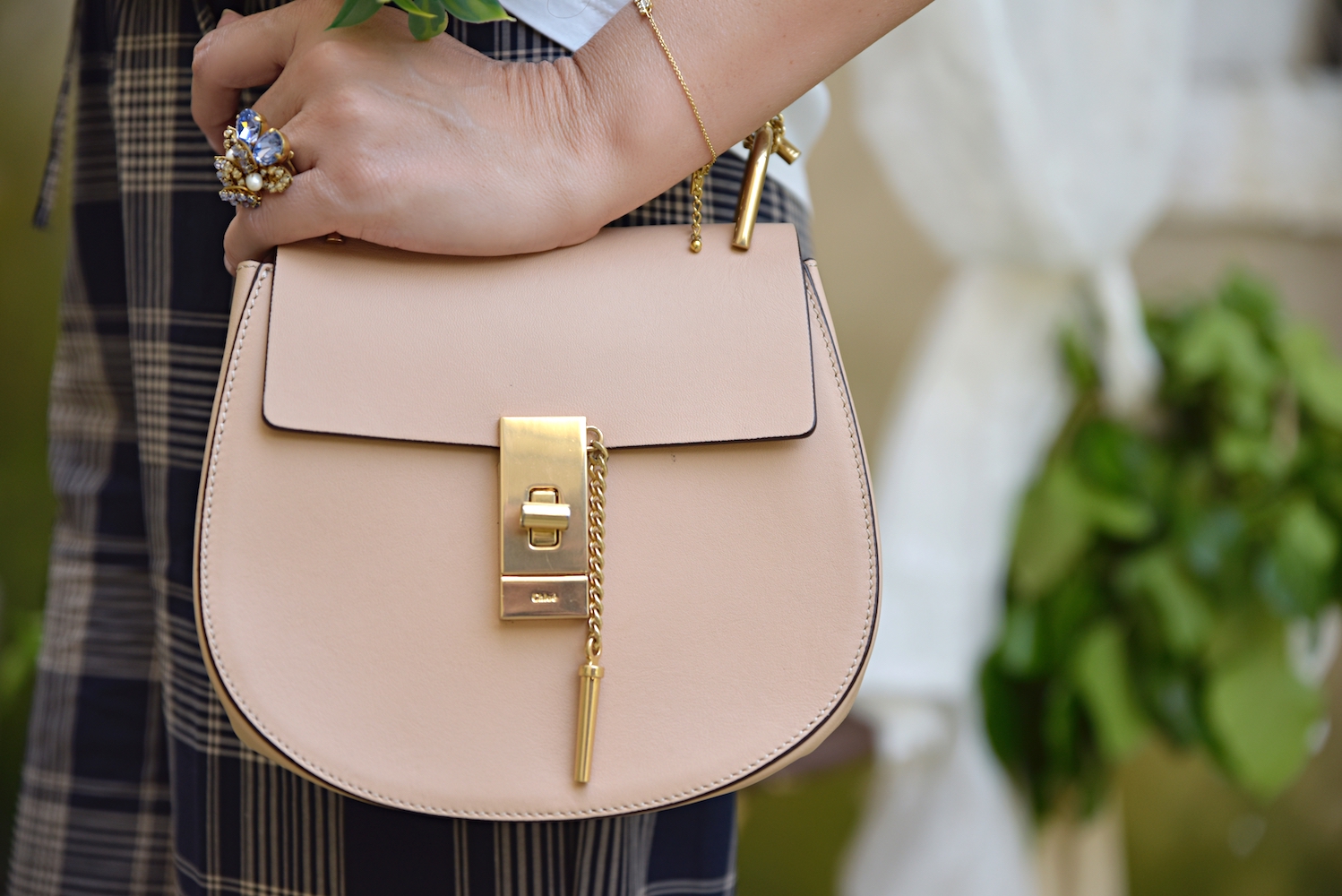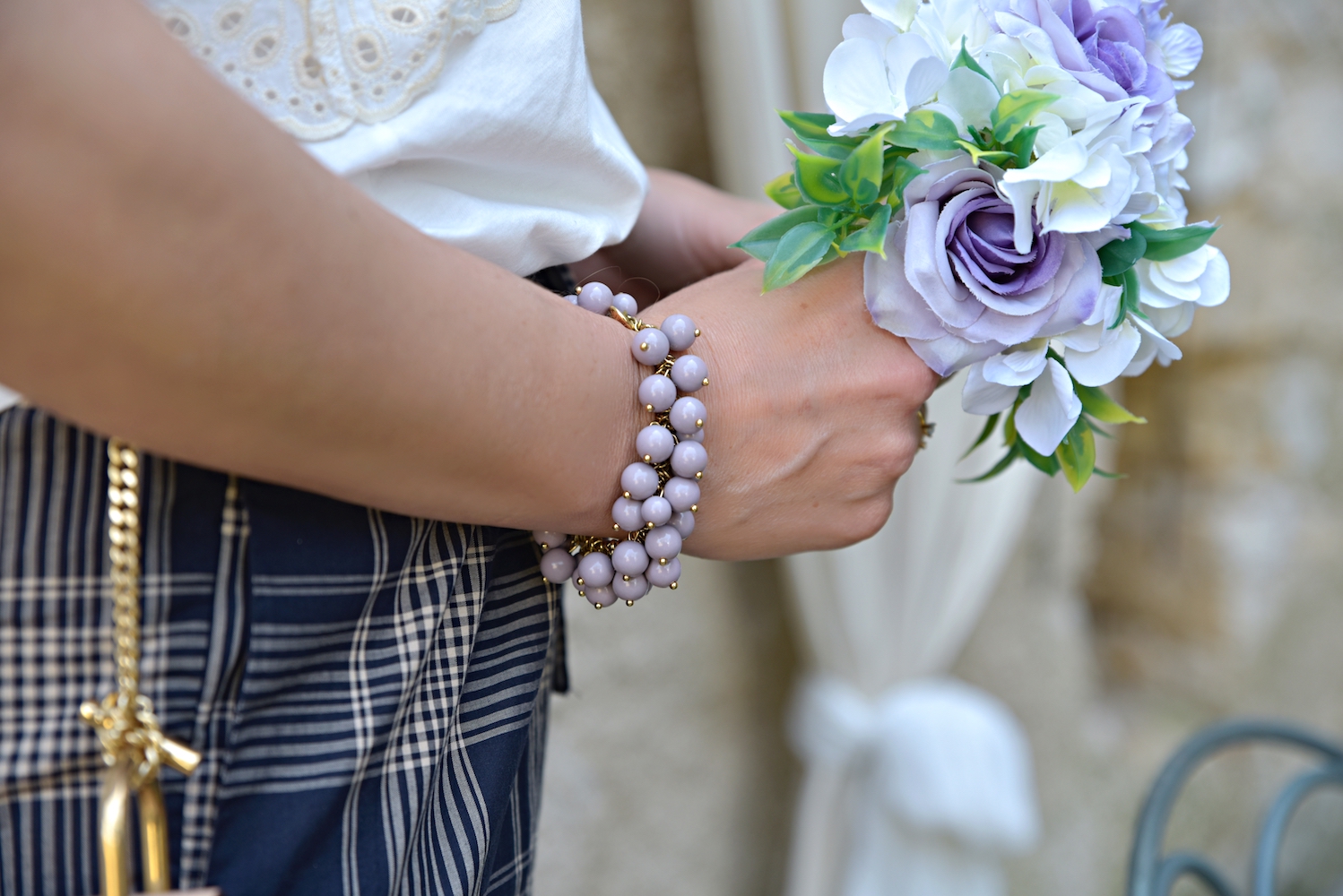 My style is as follows: pants and blouse Twin Set, sandals Top Shop, bag Chloé, violet bracelet Ann Taylor, gold bracelet Kate Spade, ring Elizabeth Cole
