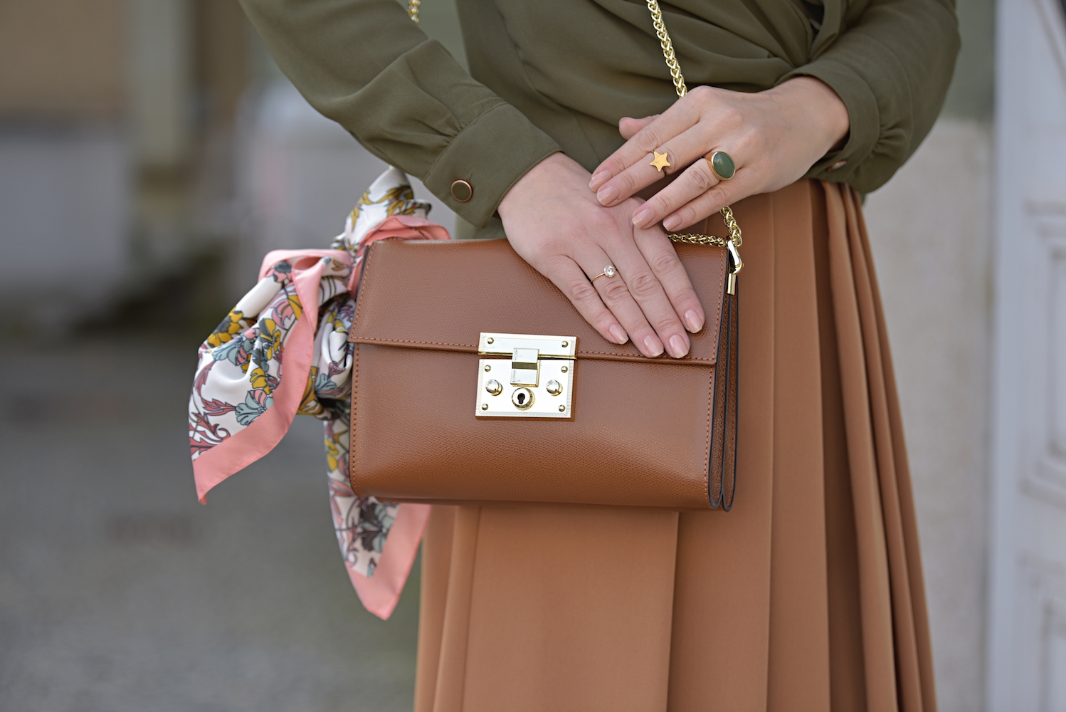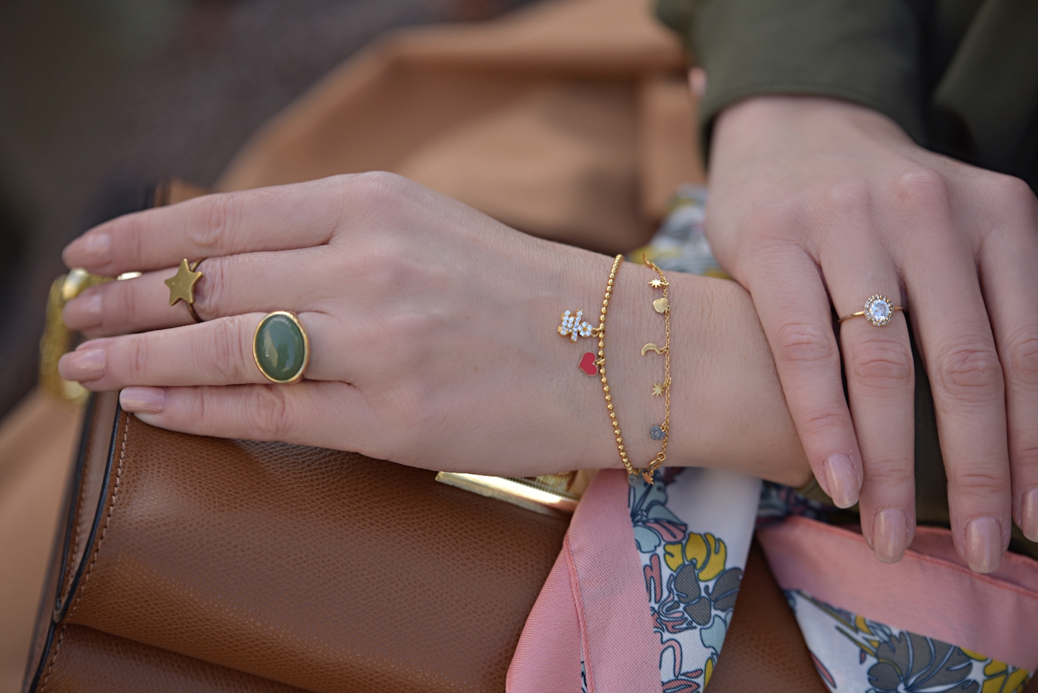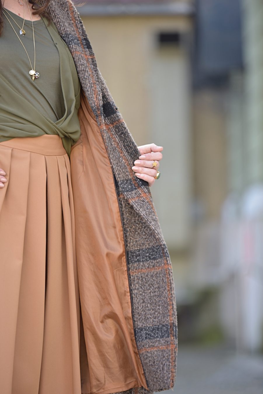 My style is as follows: skirt, blousa, scarf Sisley, shoes Nine West, bag Kelly Kross, coat Dixie, necklace and rings JCrew, necklace with an A Monica Vinader, bracelets Rebecca, head band Accessorize.