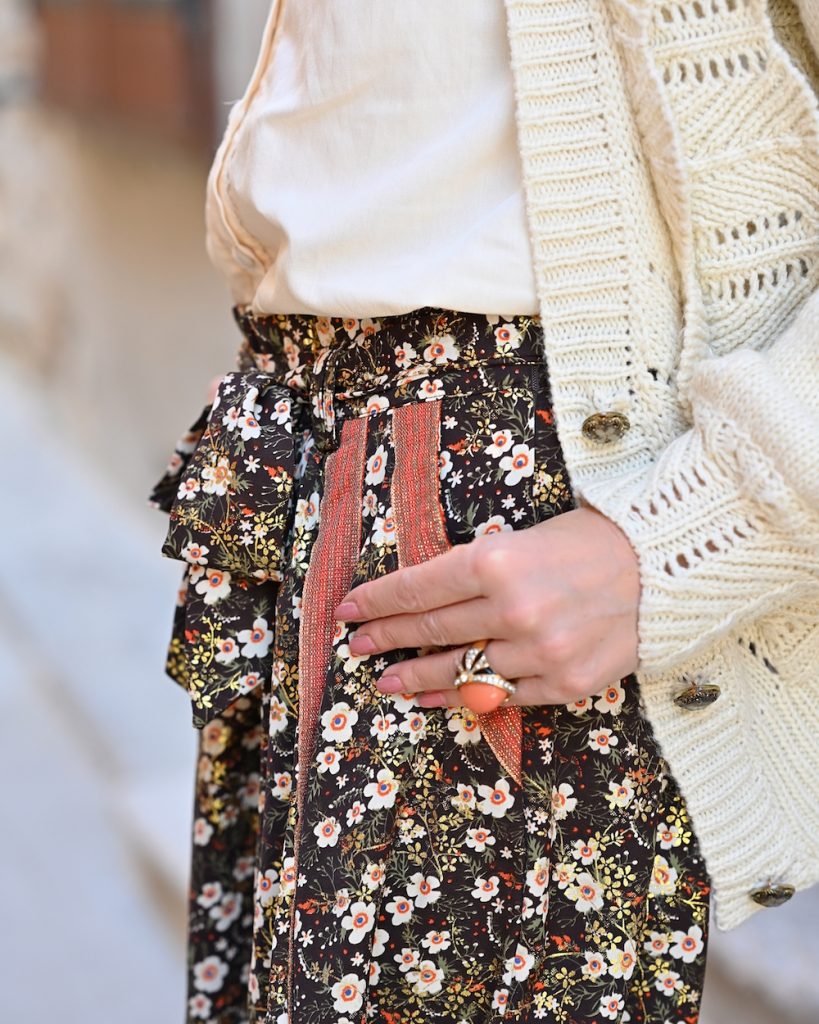 Skirts that are shorts akre skorts. The skirt-shorts hybrid was originally designed with the sole purpose of allowing females to ride bicycles more comfortably, and they were far from fashionable. While the skort has a rich history that goes back centuries, there’s no denying the innovative bottom was a ’90s wardrobe staple. I’m pleased to report the skort is making a comeback. The addition of hidden shorts greatly reduces our anxiety over a swift summer breeze coming along and putting on a show. Unlike the skorts of our past, the 2021 trend generally falls into two categories: super sporty or sleek and sophisticated. Mine is definitely chic and I love the flower print with a touch of orange. I still can’t decide if this kind of skort is nice also with sneakers…I think the best is to wear it with some heels.