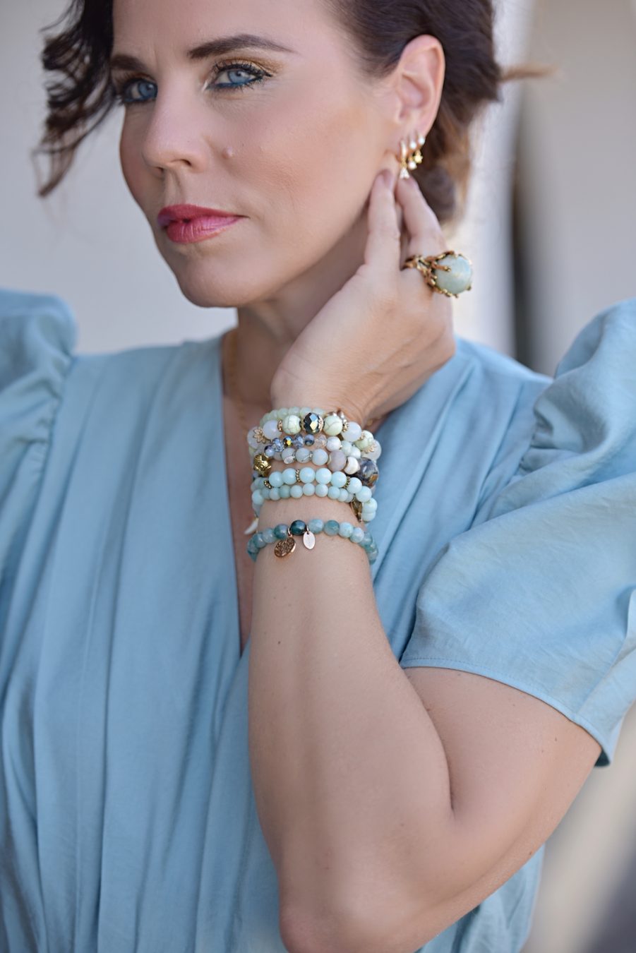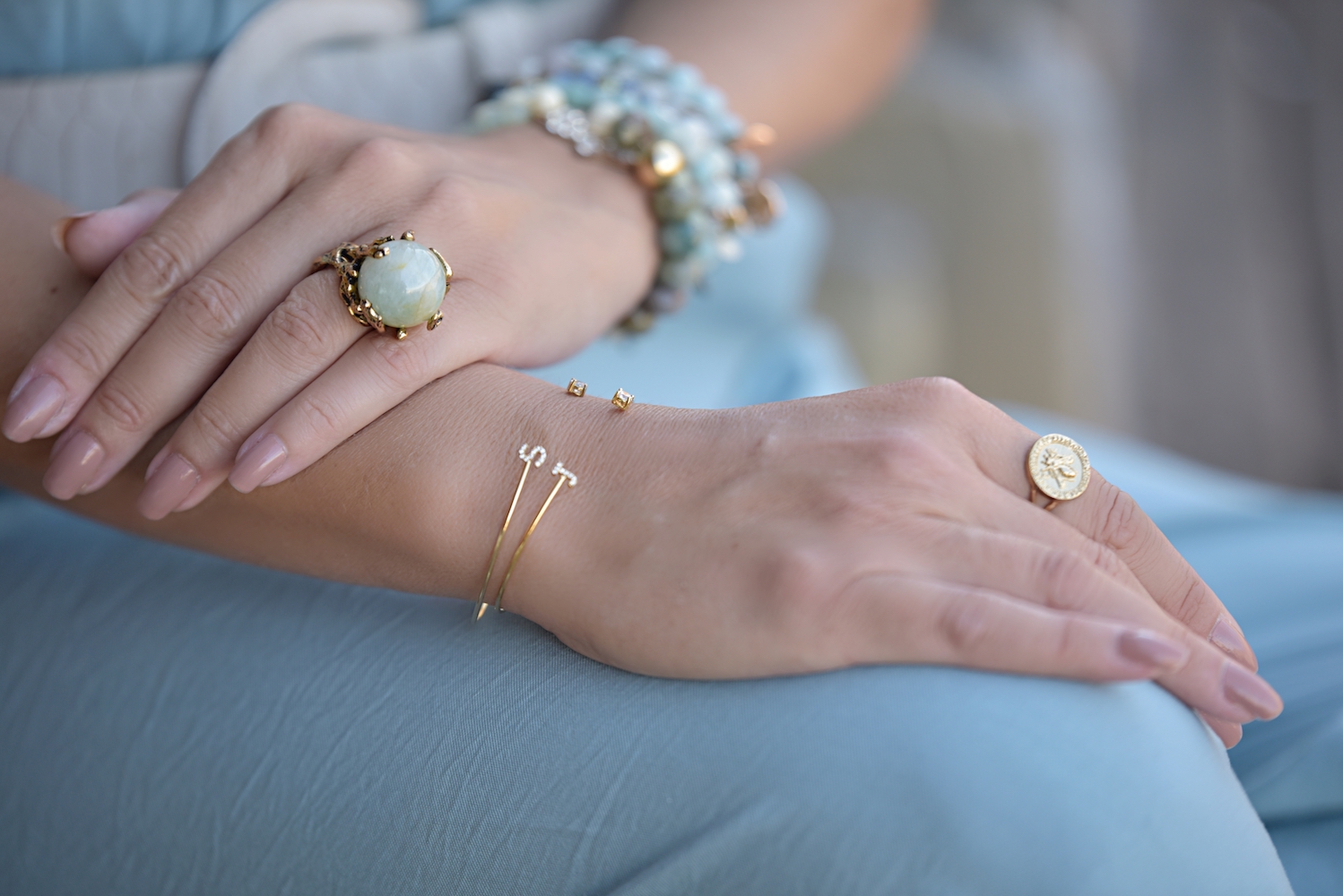 My style is as follows: jumpsuit with belt, bag and sandals Zara, bracelets Accessorize and Mia Miami, necklaces Rebecca and Bynouck, earrings Bynouck, gold ring with bee Stories.