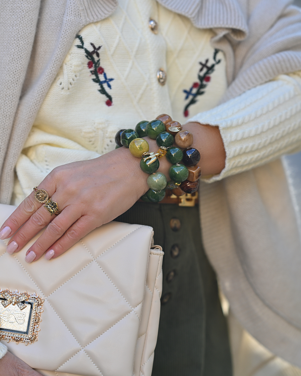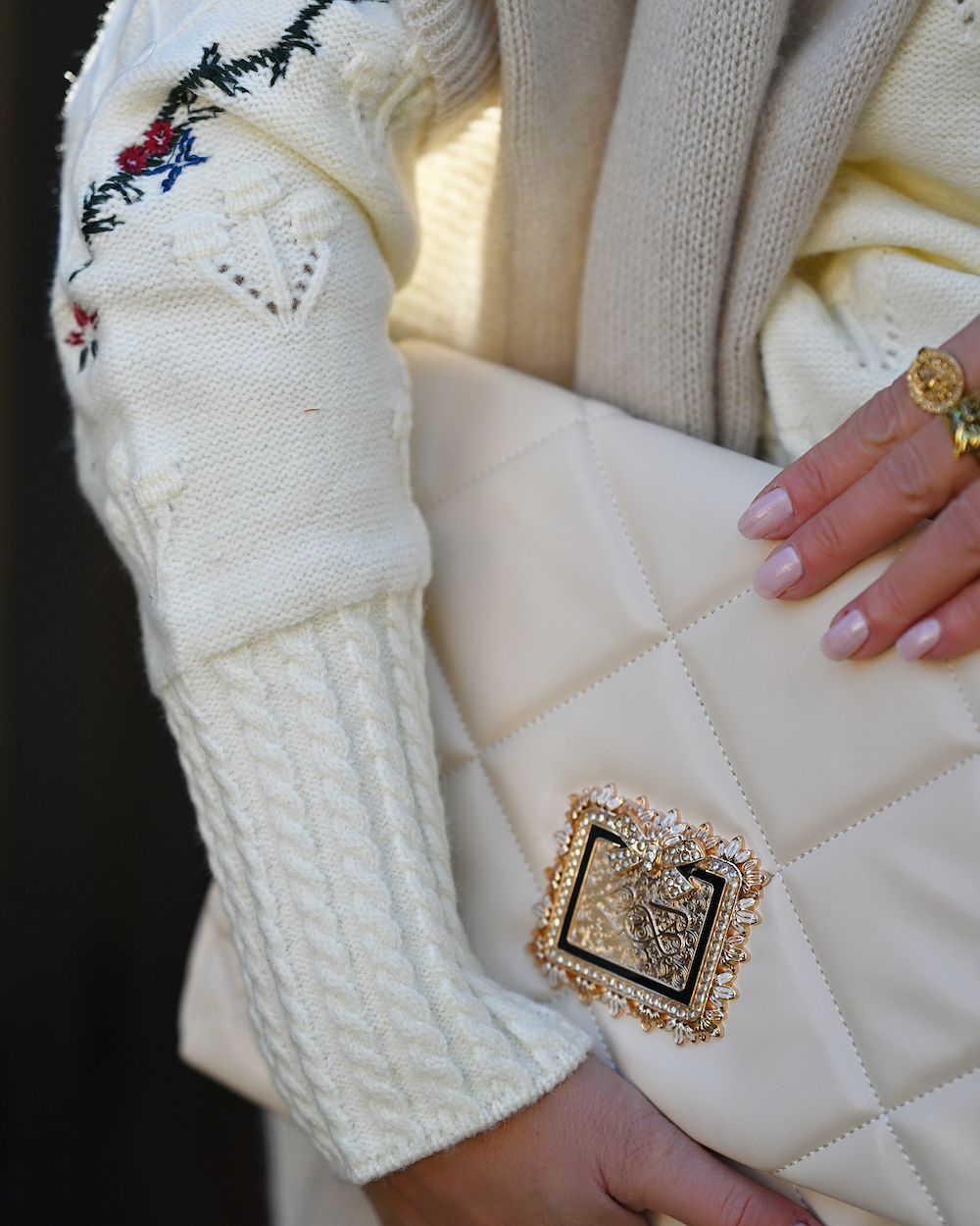 My style is as follows: knitwear, hat and pants Rihoas (code LORELLA for a 20% off), bag My Lovely Bag (code LORELLA20 for a 20% off), bracelets Maja Maras (she is amazing and you find her on Instagram), belt Ralph Lauren, white boots Zara.