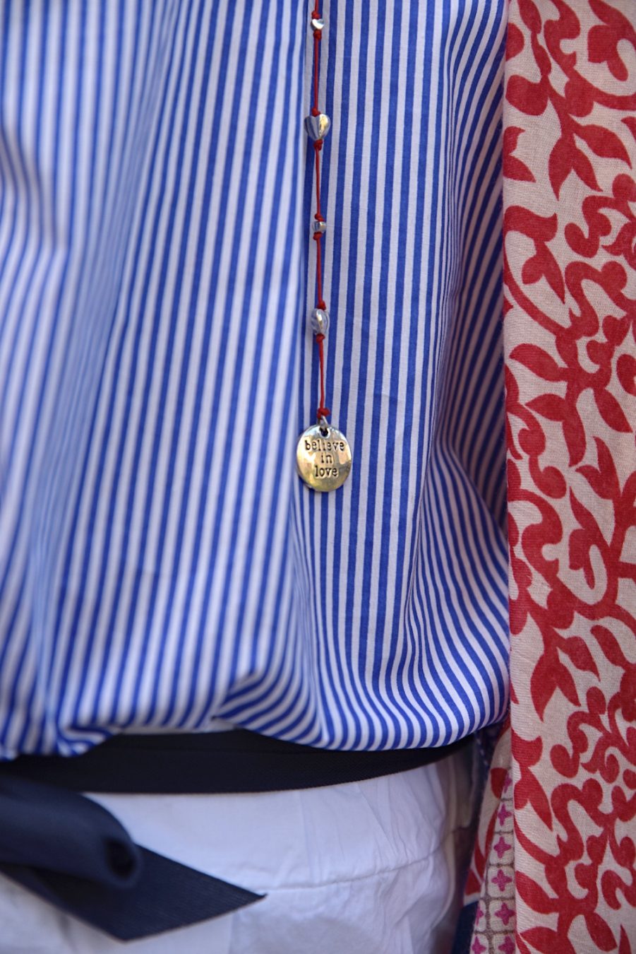 My style is as follows: this time I can’t write about brands or shops, everything I am showing you was bought in a super small shop in Cinque Terre, Italy, and custom made. Even the small bag and the red sandals are hand made…how nice!