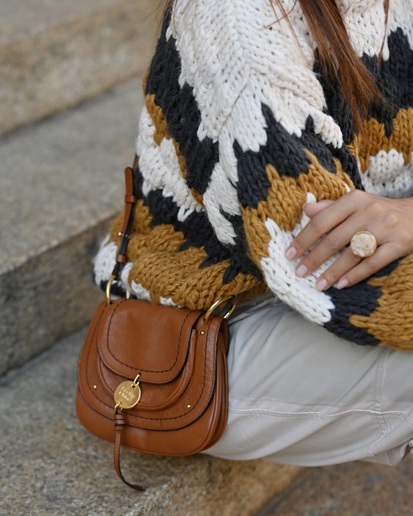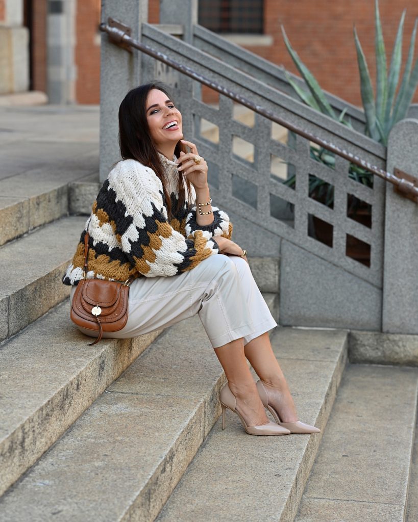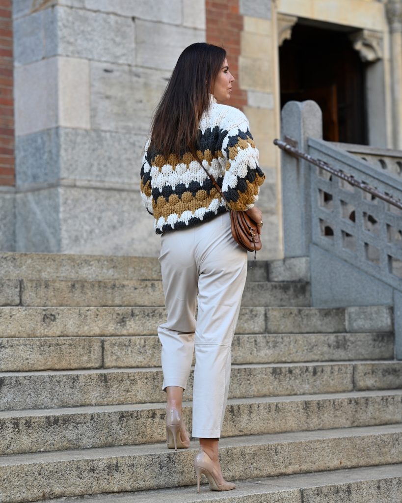 My style is as follows: knitwear Chicwish, pants Twinset Milano, shoes Guess, bag Chloé, jewelry: JCrew, Marni, H&M.