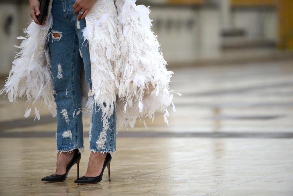 If the whole feather wave didn’t catch your fancy, then give accessories a try: an evening handbag is a must-have, and don’t worry, you’ll wear it a lot. Opt for basic tones: white, black, beige or nude, and your investment will return. Fashion includes these bags in everyday looks with jeans and sporty, even cargo pants. If you have a pair of glittery sneakers, know that your look will be nicely completed. I’m not sure I persuaded you, but I hope you’ll give this trend a chance, because it really is quite intriguing.
