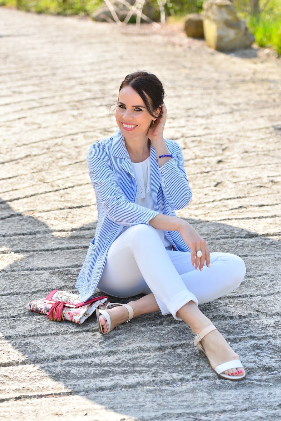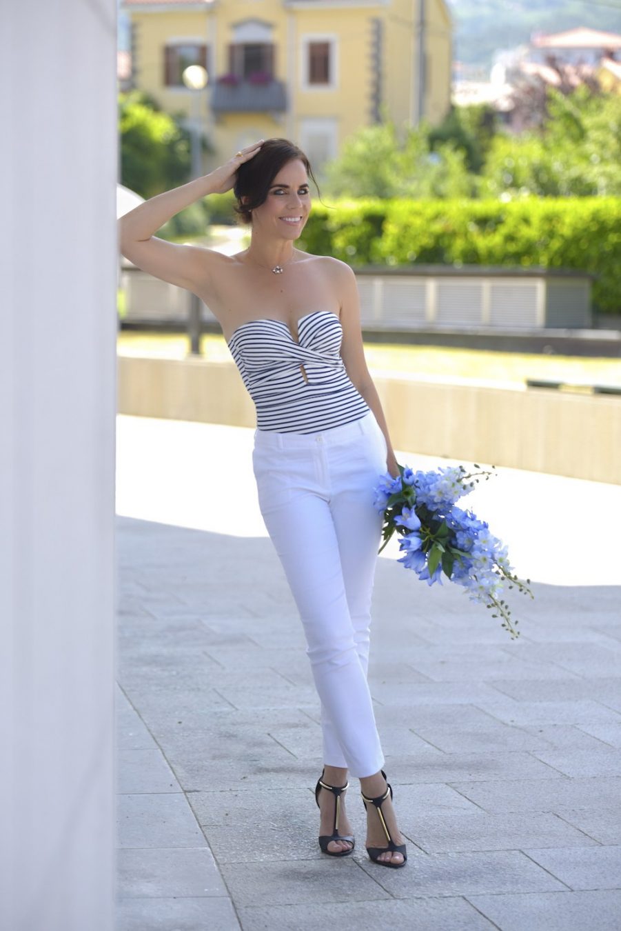 I know some women bet on the little black dress,but I still don’t feel so attached to it, because it can seem so strict. Stripes on the other hand smell like summer and there are a lot of them in the warm season. I even got used to the pajamastylesets and although I wouldn’t buy them,I still admire the lookas part of street fashion. Remember, vertical lines elongate our figure, horizontal ones widen us, and we can also combine stripes with flowers, dots, as well as contrasting shades, it’s all allowed.I have an entire stripes section in my wardrobe: Ihave anauticalstyle corner, and I can tell you, it countsmore than a few pieces. Here I wear: Top H&M, blazer Souvenit, pants JCrew, sandals Dorothy Perkins, bag New Cute, bracelet Elizabeth Cole, rings Oasis, earrings Accessorize: