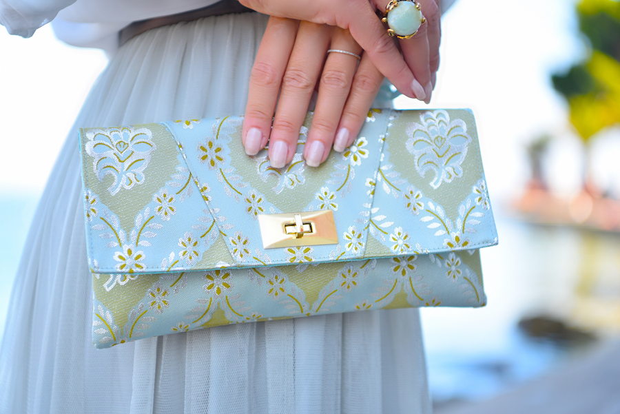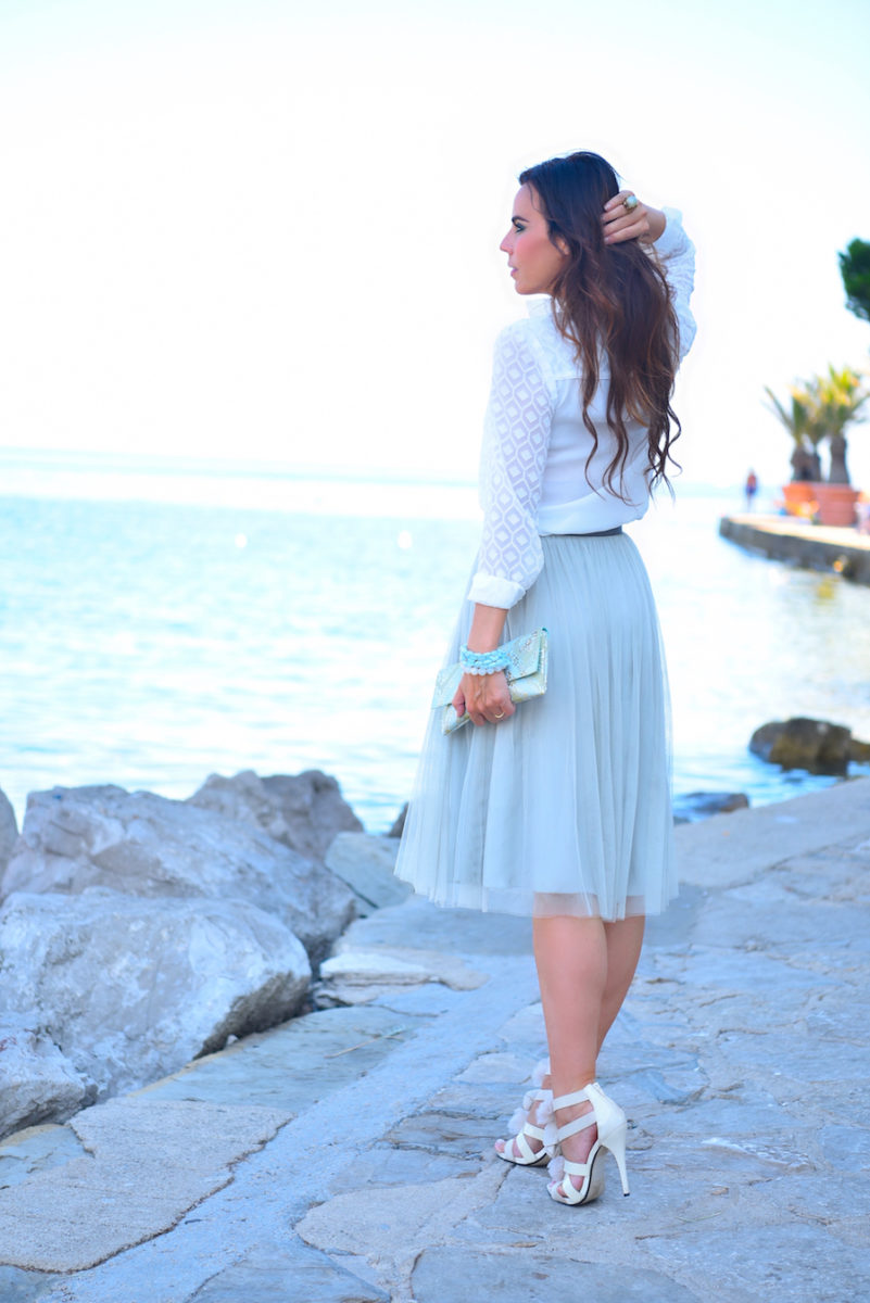 Hi Nina, the skirt and blouse are from Reiss, sandals TopShop, bag Paul&Joe. Take care and thank you for supporting 🙂