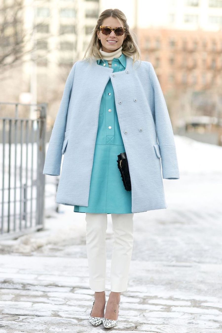 Very chic is just to focus on one color. You can wear the same color all-over or put a brighter version of the pastel on top as shown at the right. Pastels top to toe!